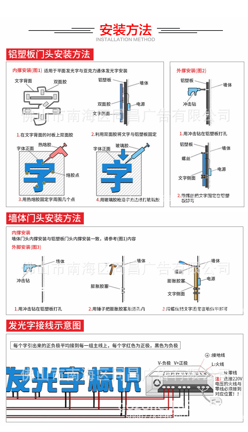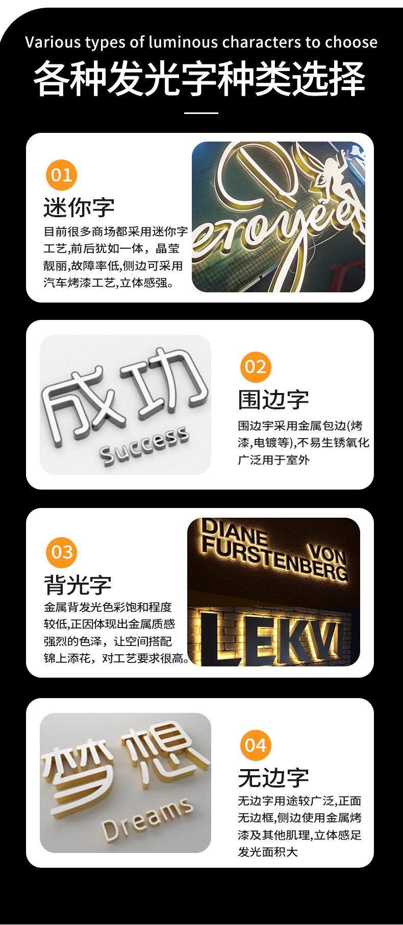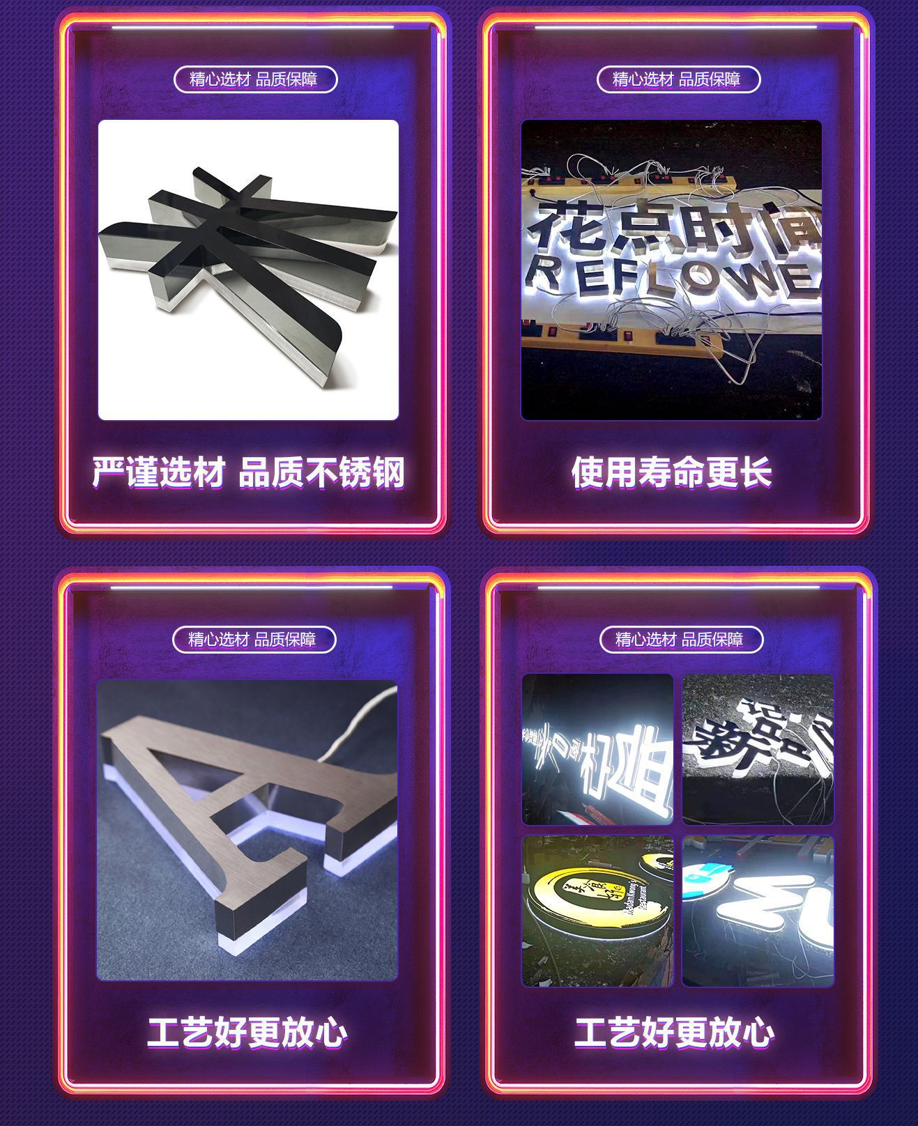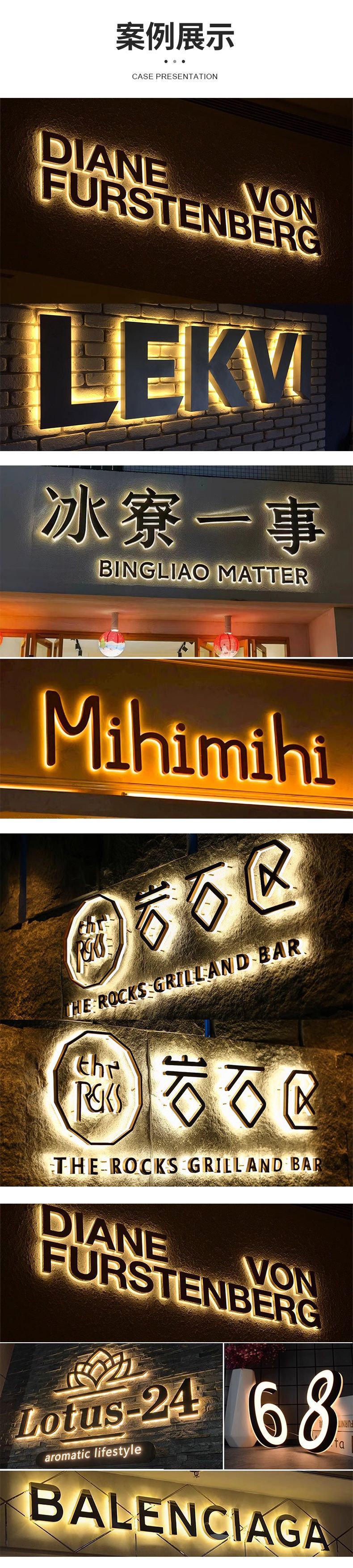 Produksi papan nama logam stainless steel dengan huruf bercahaya Seiko untuk iklan luar ruangan