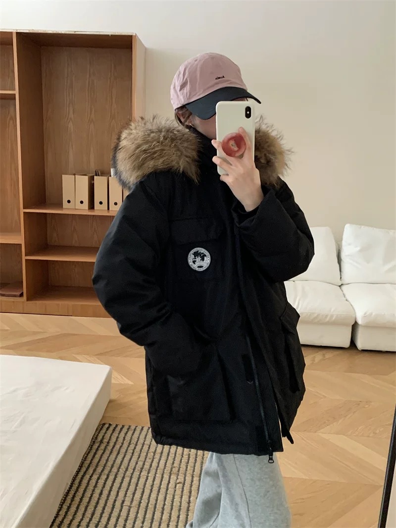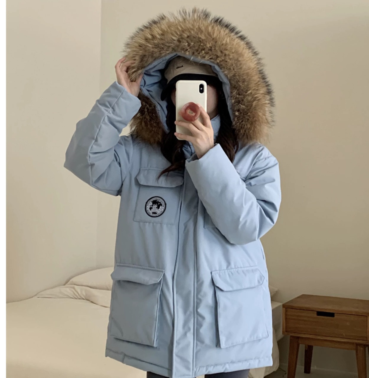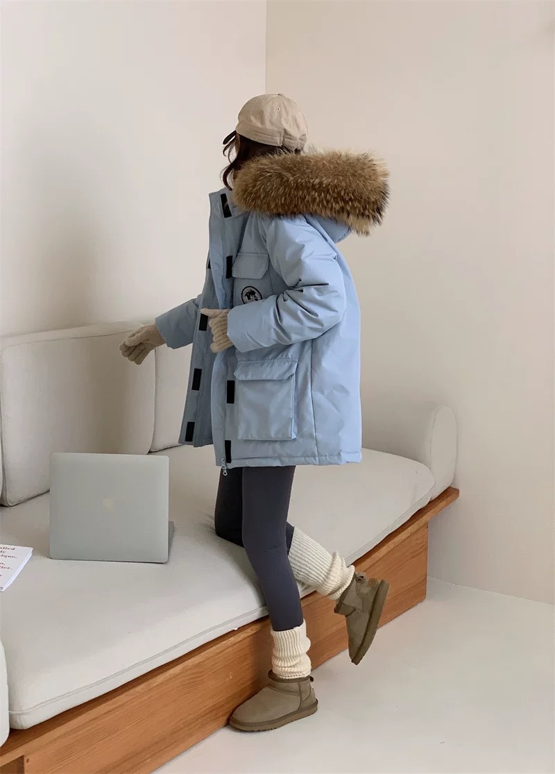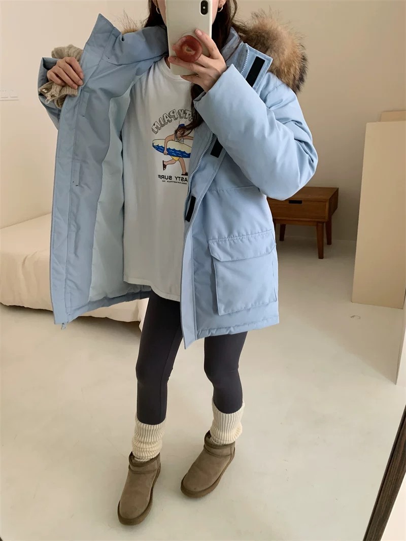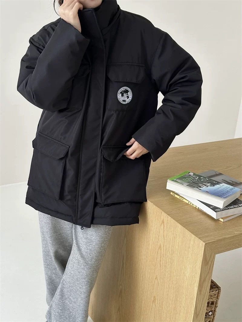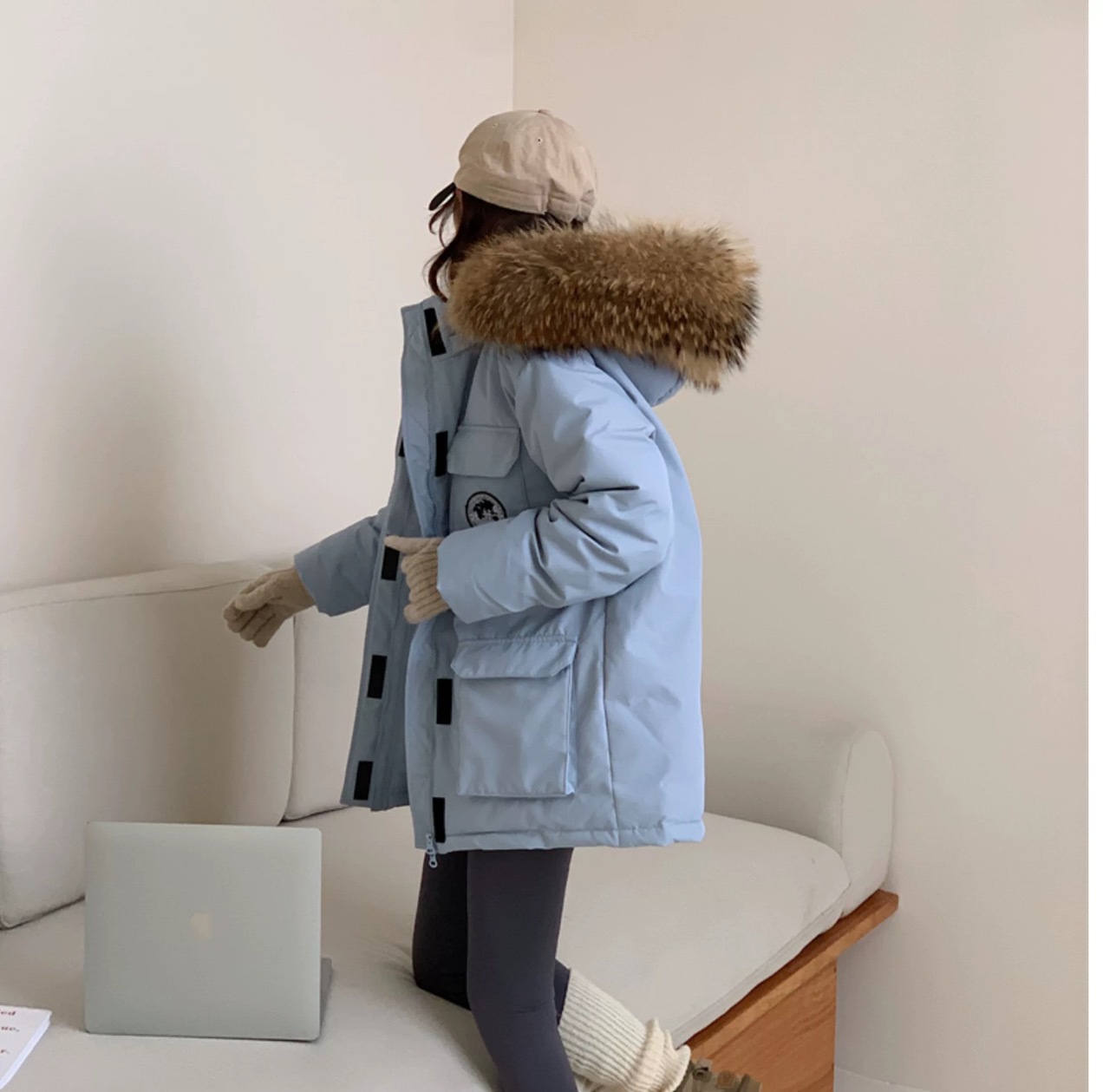 Jaket Kerja Warna Biru Jaket Couple Longgar Ekstra Tebal Model Panjang Sedang Pakaian Pike Model Baru 2025 Pria Kecil Wanita Jaket Musim Dingin