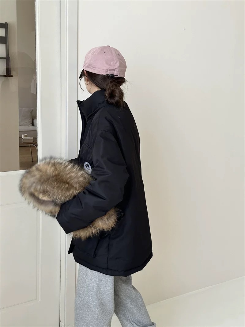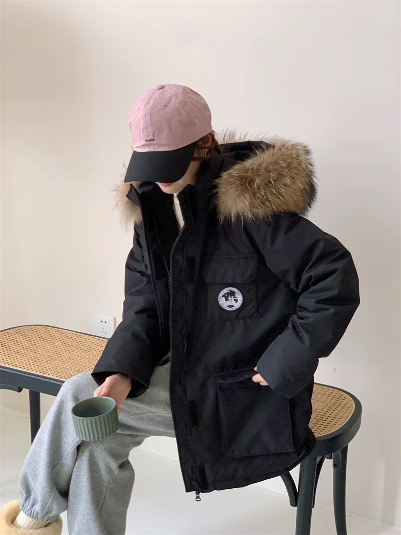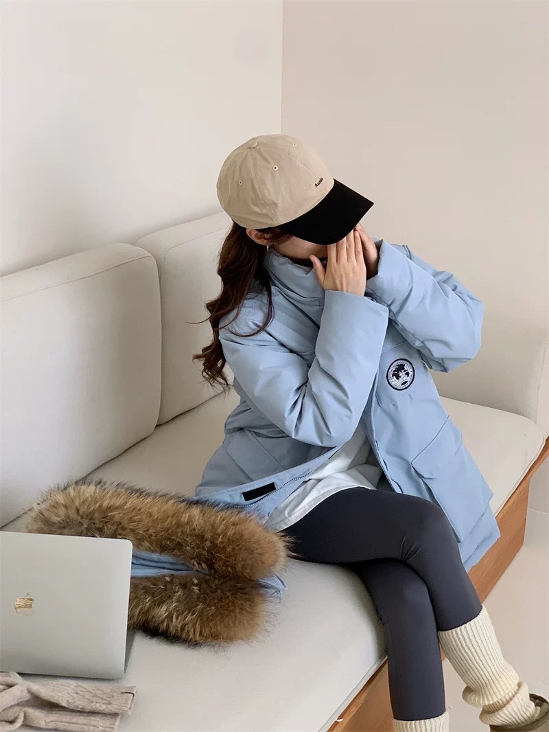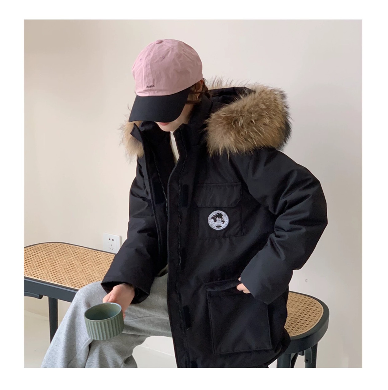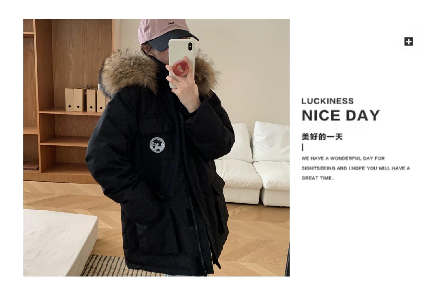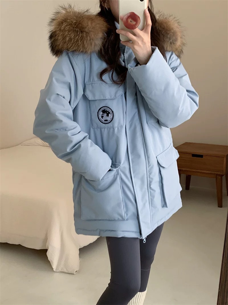 Jaket Kerja Warna Biru Jaket Couple Longgar Ekstra Tebal Model Panjang Sedang Pakaian Pike Model Baru 2025 Pria Kecil Wanita Jaket Musim Dingin