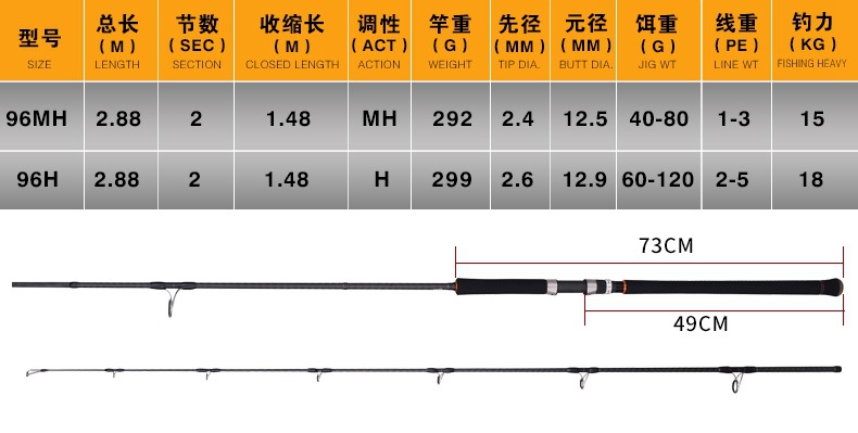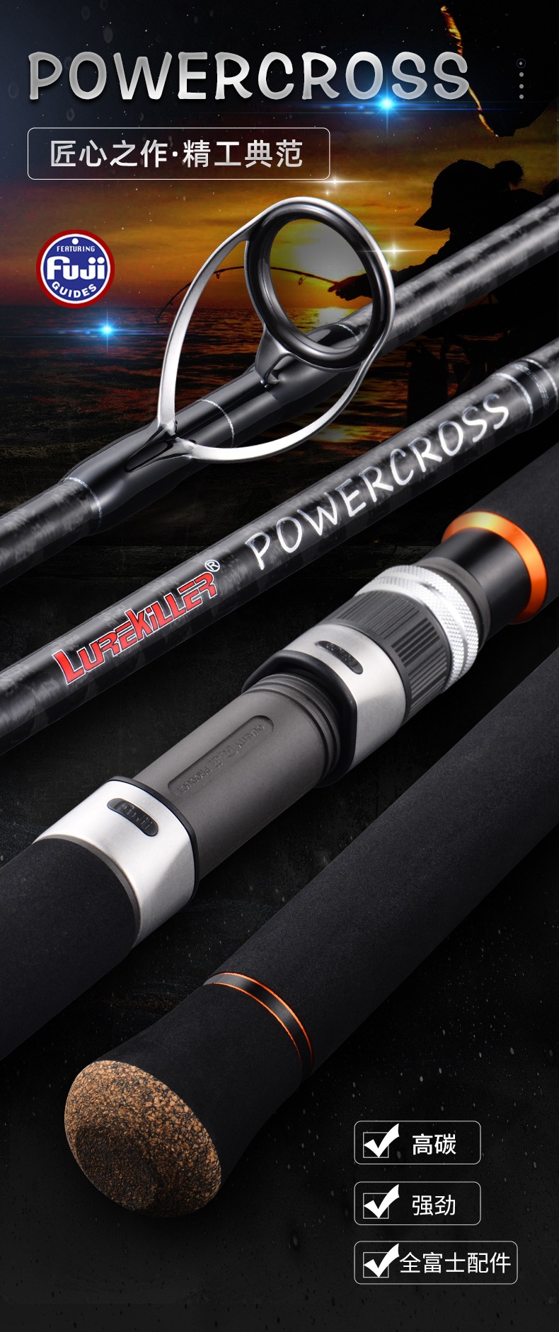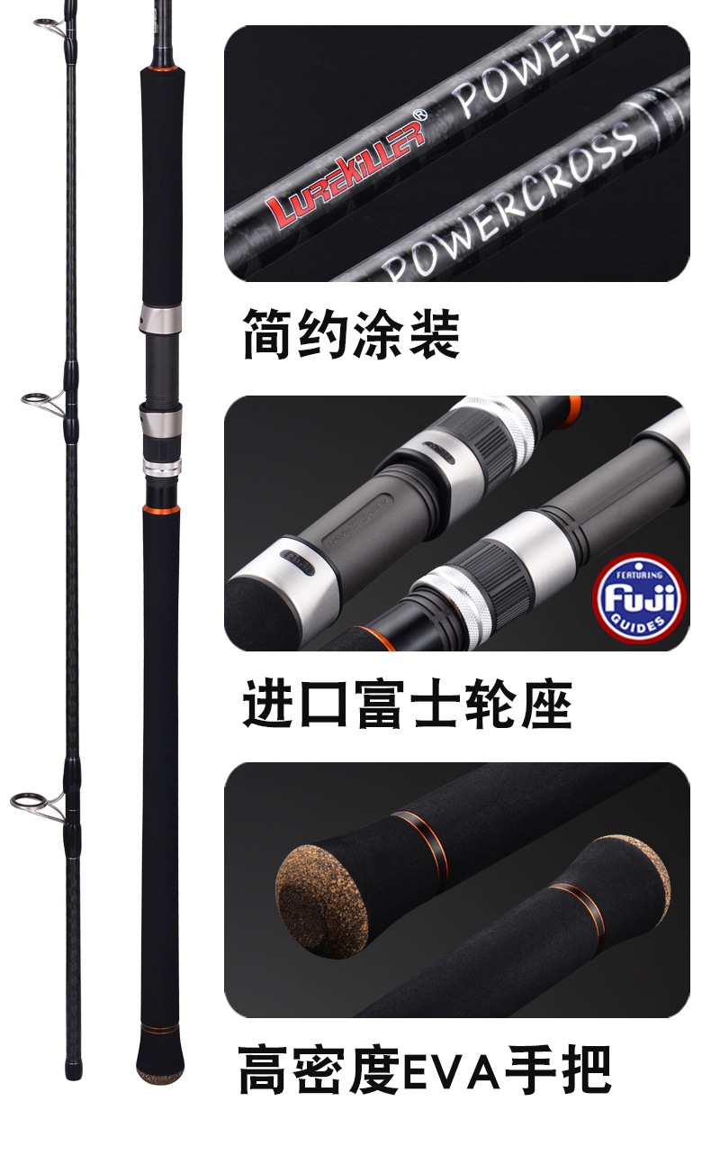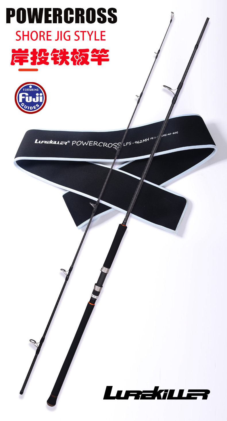 Lurekiller joran pancing karbon, POWERCROSS joran besi cor 2.88 m gelombang 40-80/60-120g