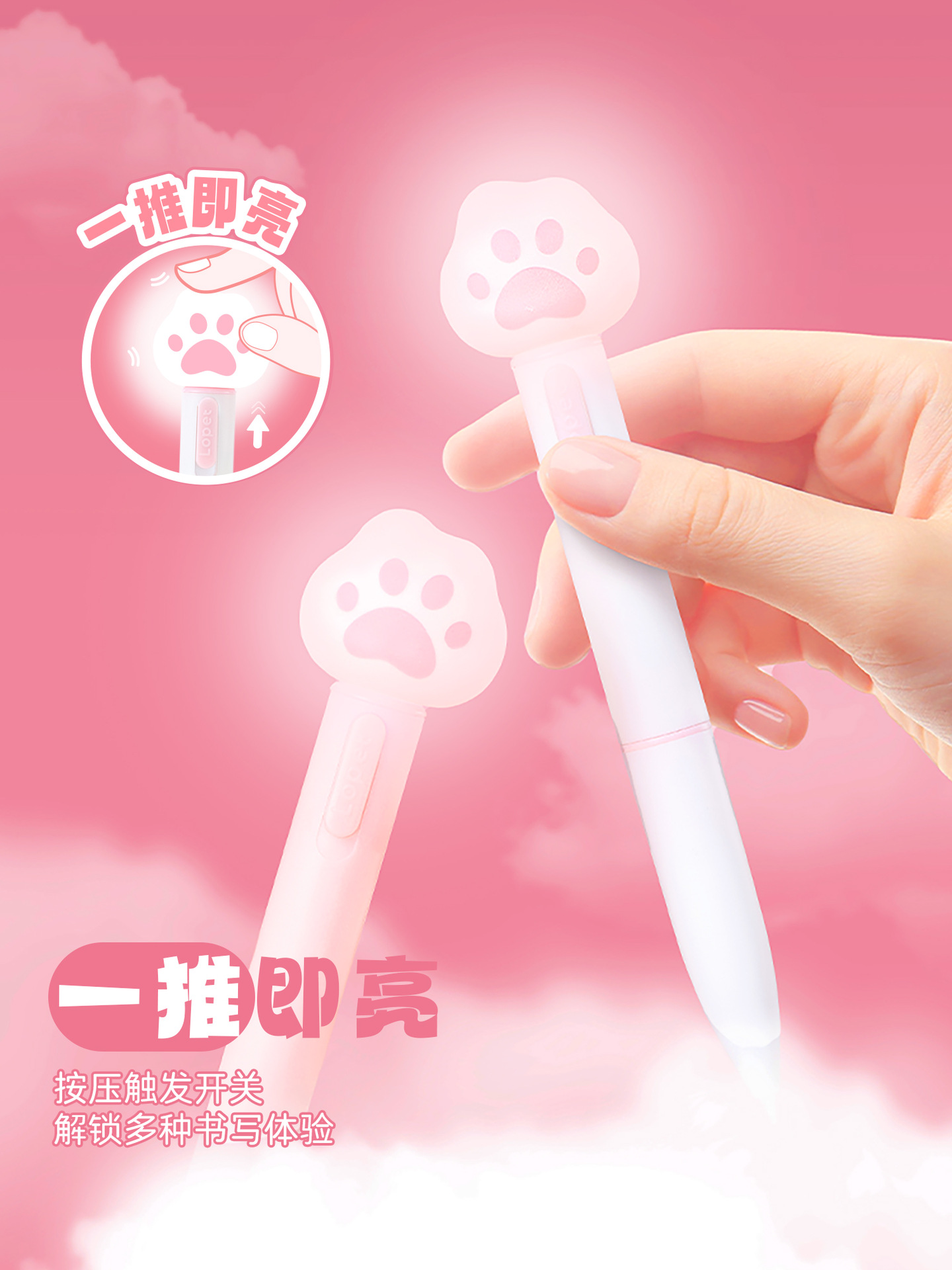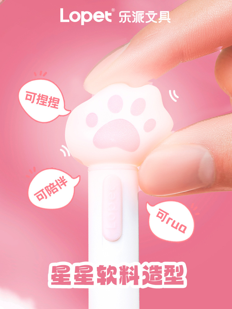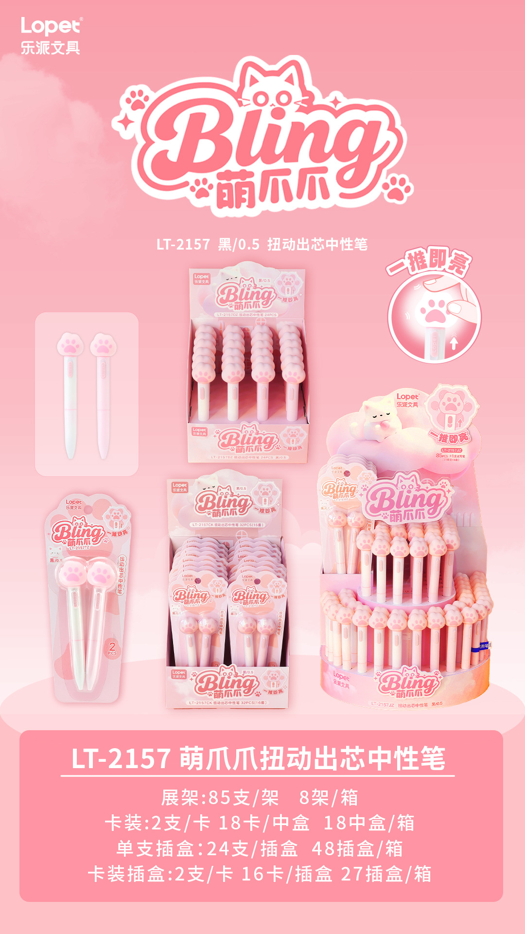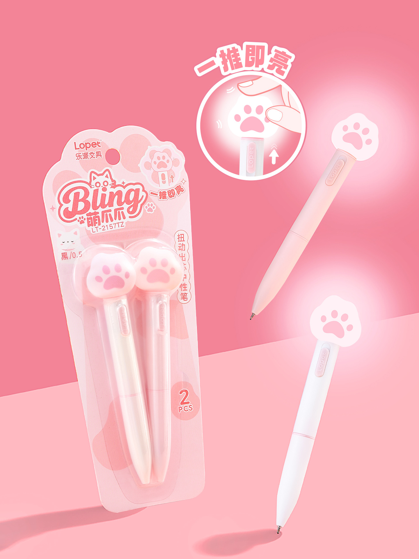 乐派2157萌爪爪扭动出芯中性笔黑色0.5mmST笔头发光可爱学生速干