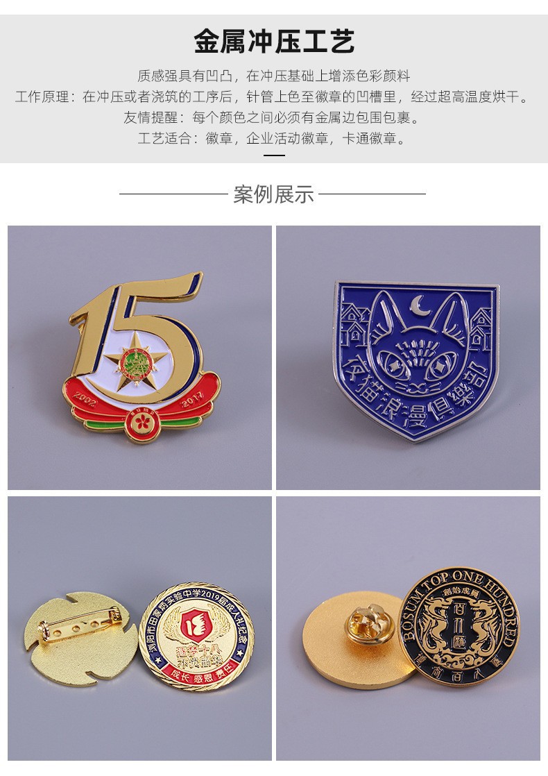 Lencana logam kustom, lencana peringatan, bros, label nama, medali, logo perusahaan ukiran laser, lambang sekolah, lambang kelas.
