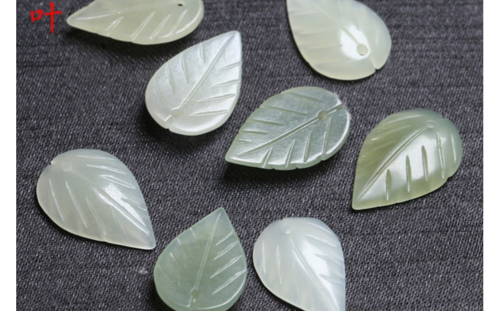 13x19mm Yuantong Hetian liontin daun giok DIY anting Gelang Kalung Antik Aksesori jepit rambut