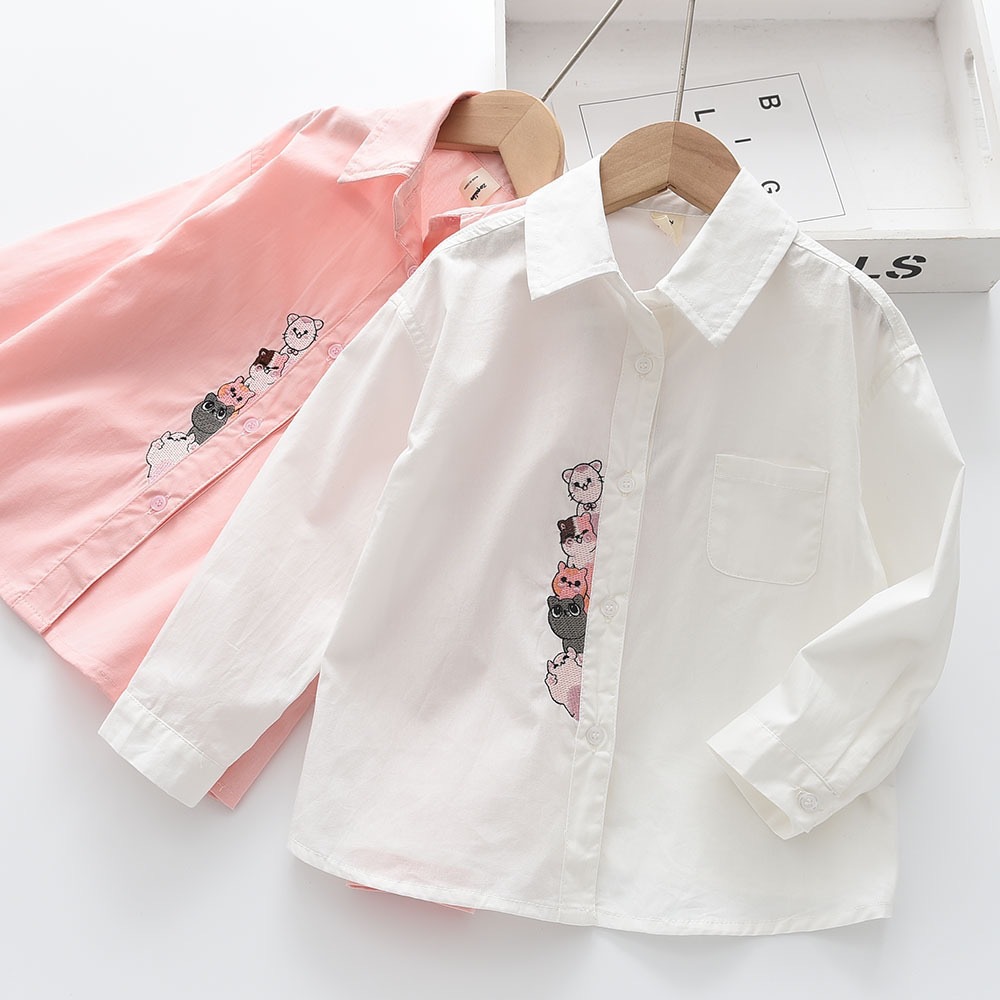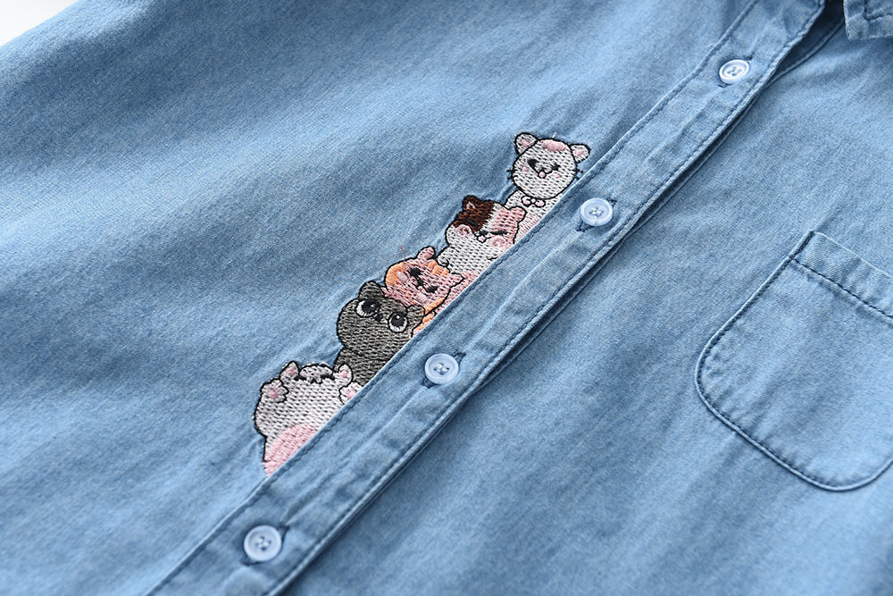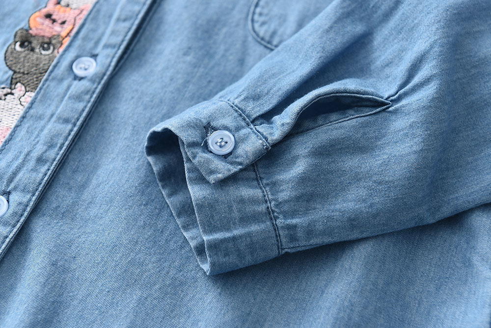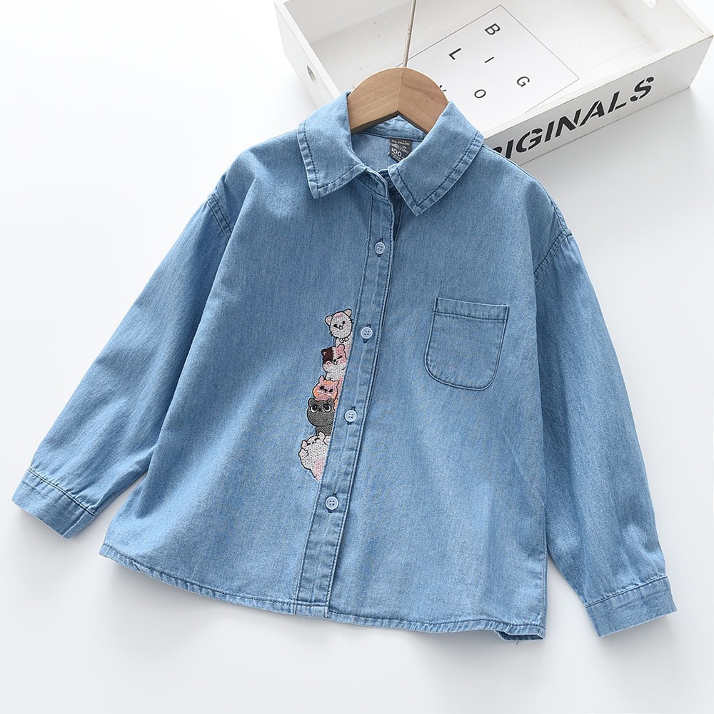 2025春季新款儿童长袖牛仔衬衫 门禁绣花款女童衬衫