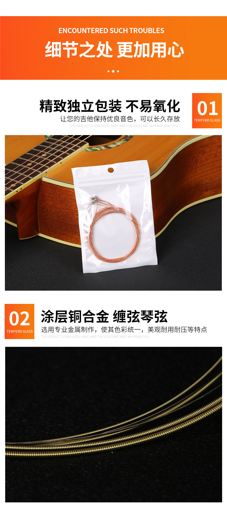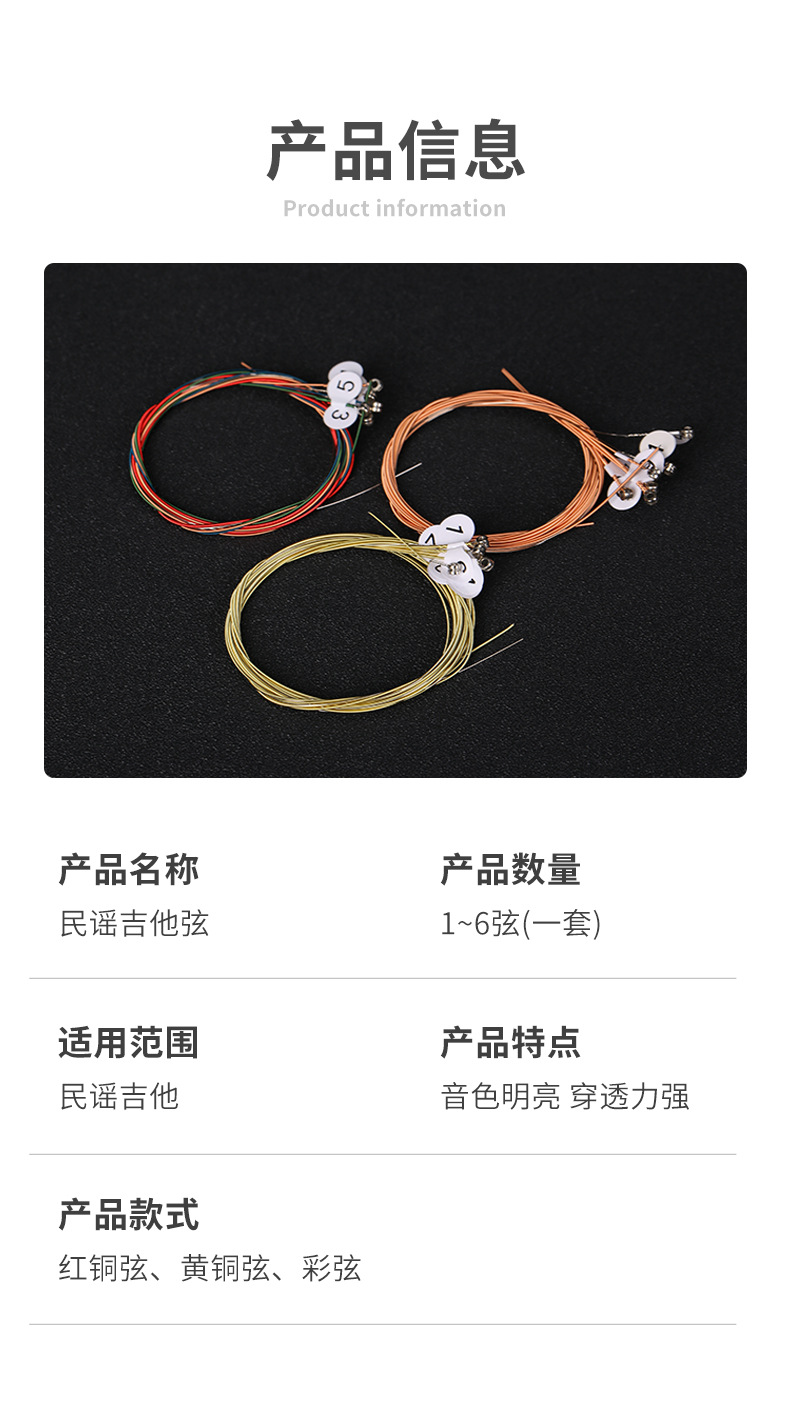 Senar gitar akustik rakyat dikemas secara independen senar warna senar tembaga merah senar kuningan 6 senar uk senar pabrik penjualan langsung senar gitar
