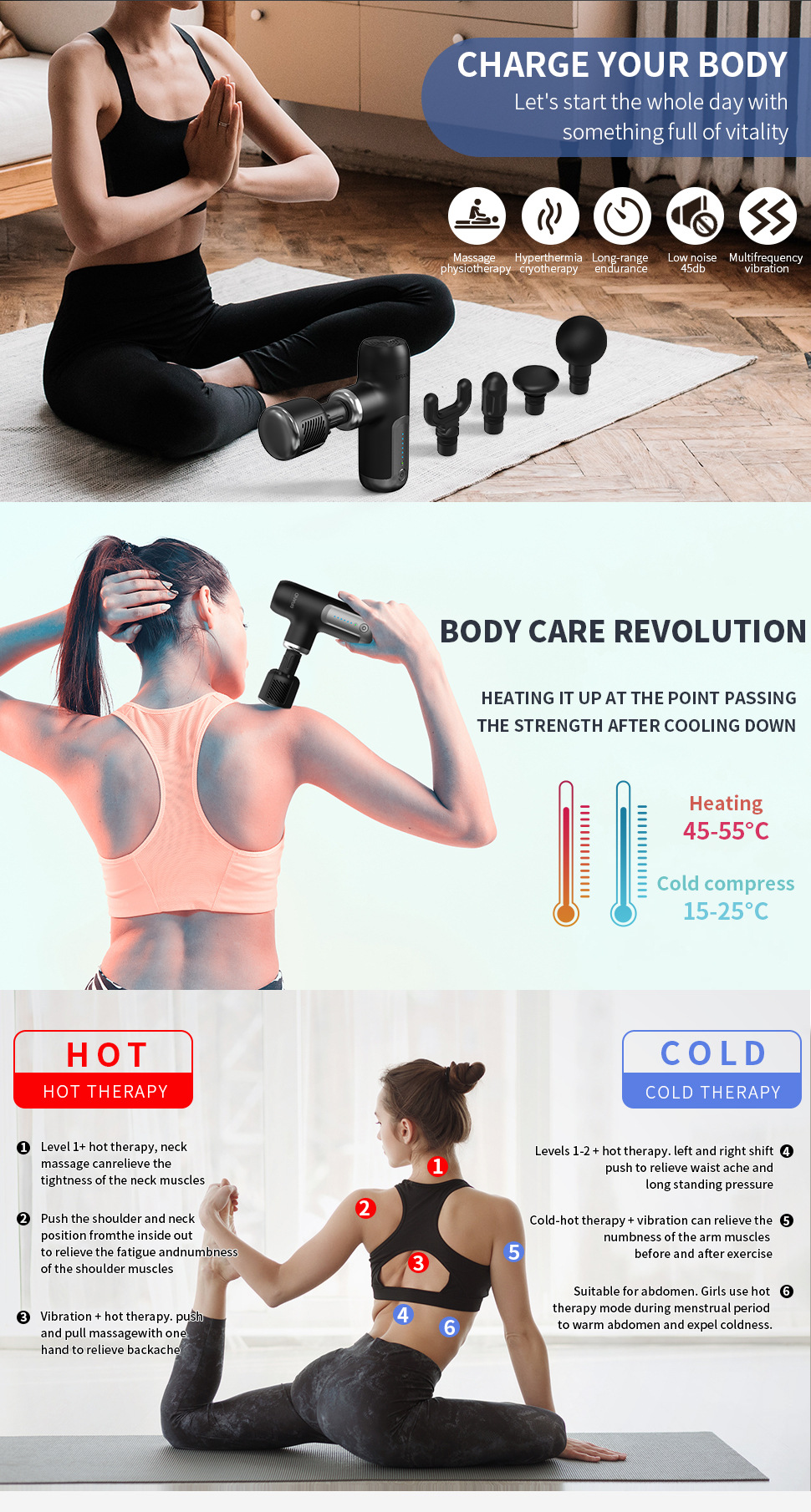 Pistol Fasia Panas dan Dingin Model Baru Alat Pijat Otot Getaran Listrik Mini Kompres Panas Dingin Fasia Pistol Pijat Kelas Profesional