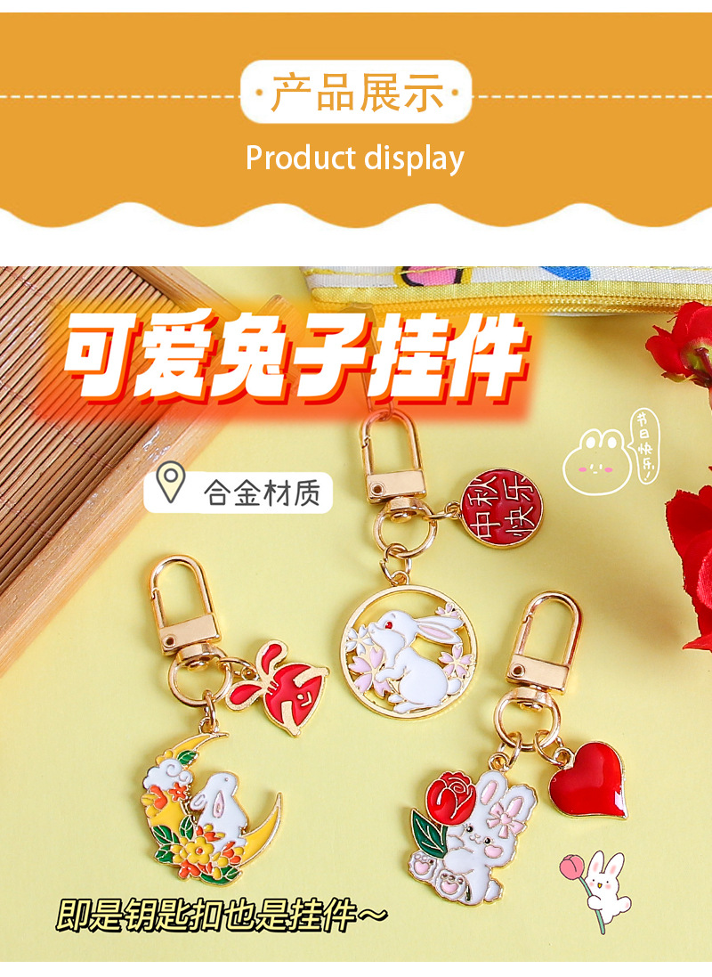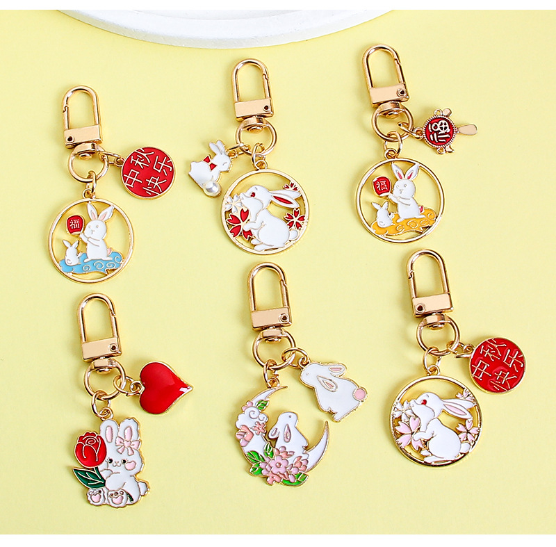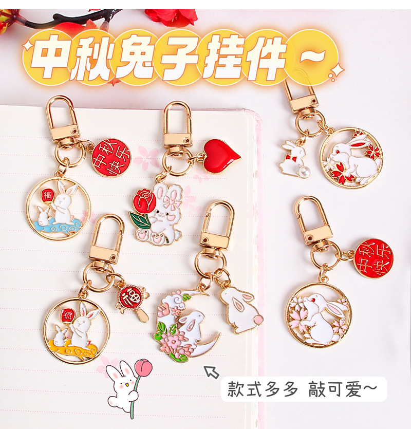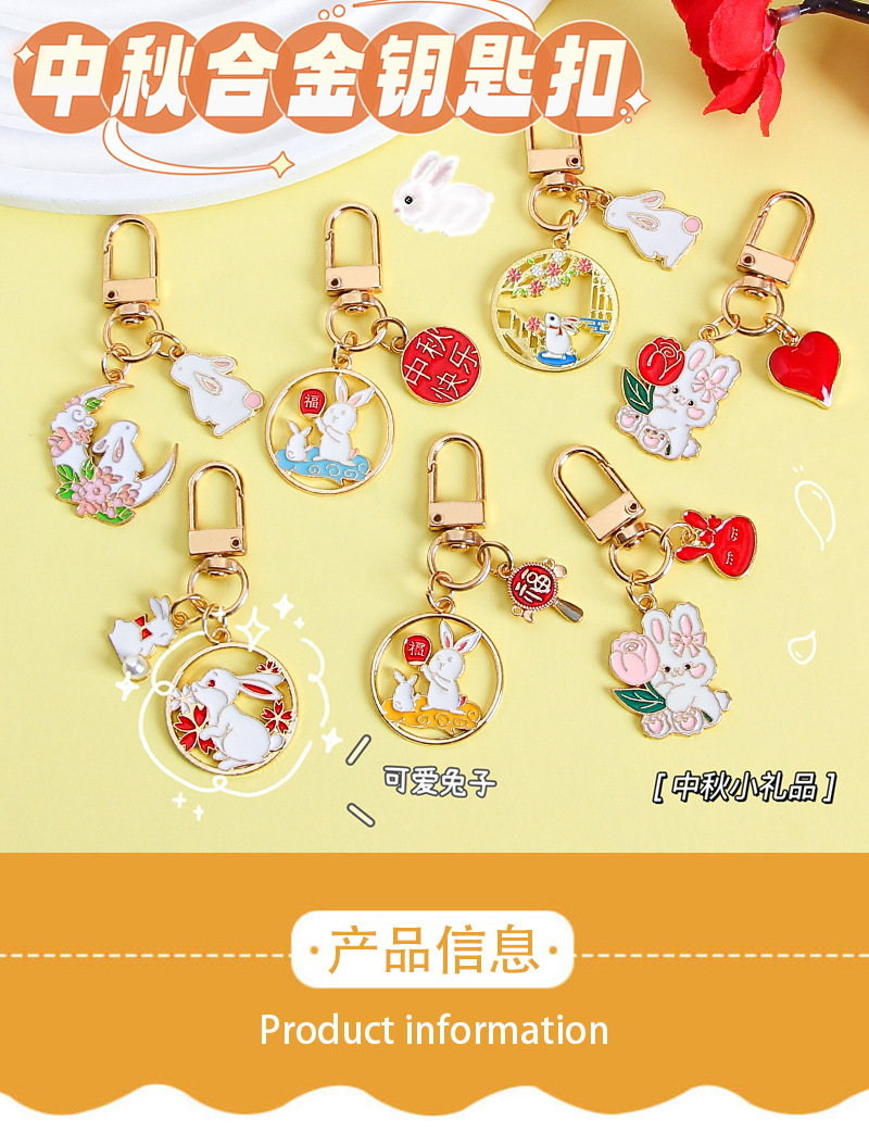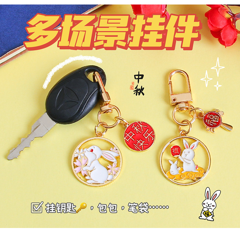 中秋兔子钥匙扣挂件金属卡通可爱包包装饰挂饰礼物节日小礼品批发