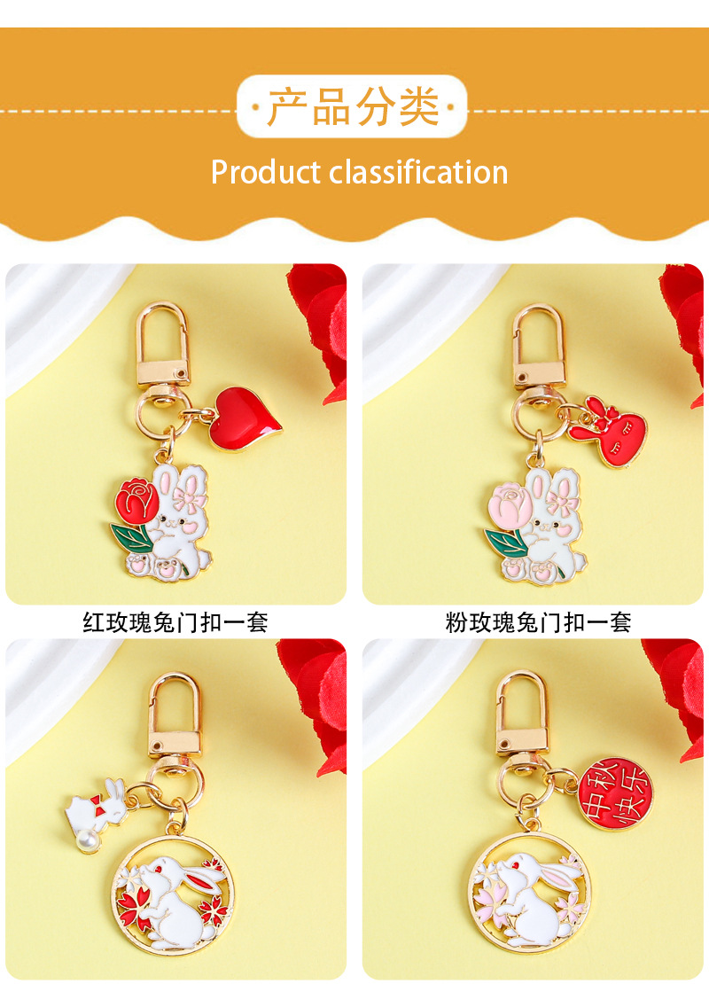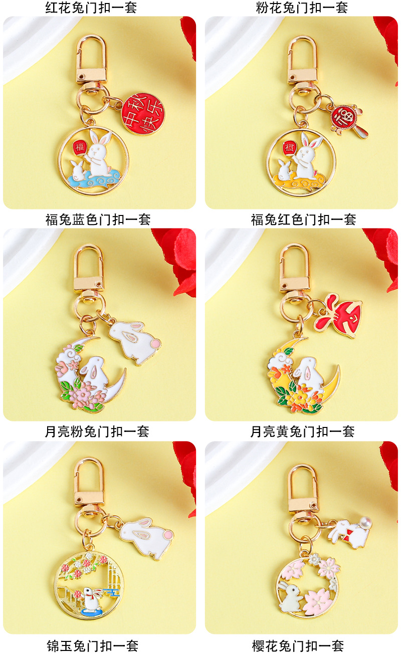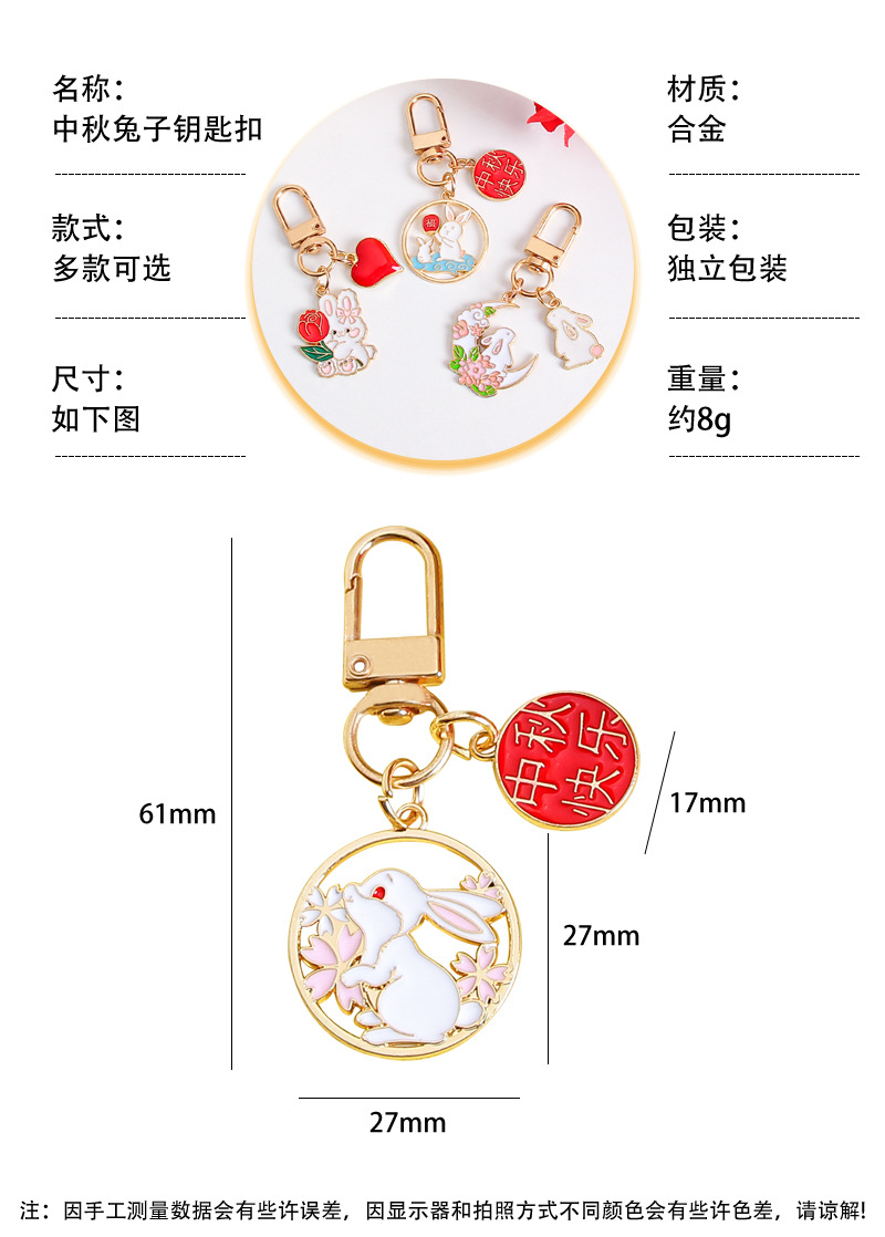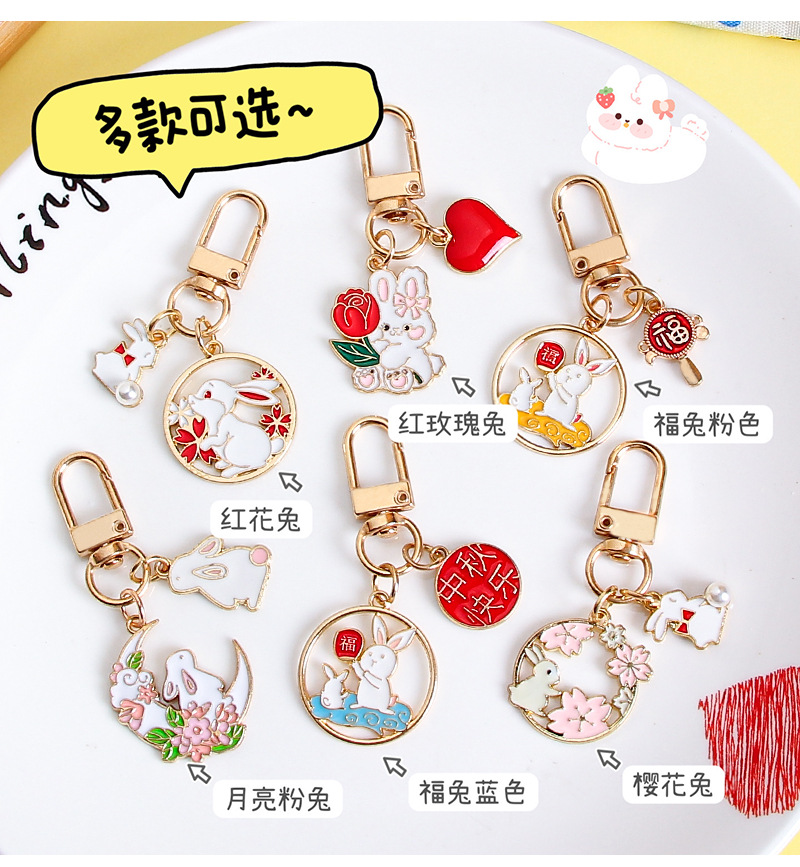 中秋兔子钥匙扣挂件金属卡通可爱包包装饰挂饰礼物节日小礼品批发