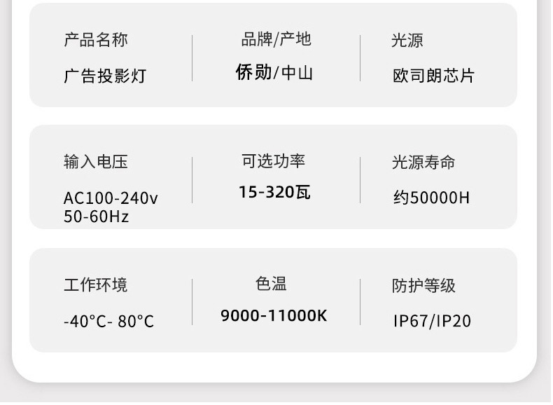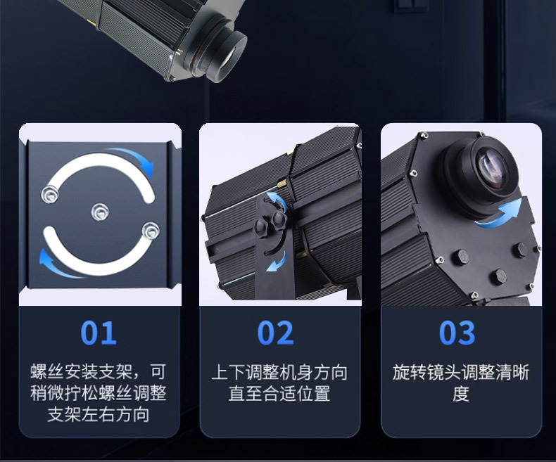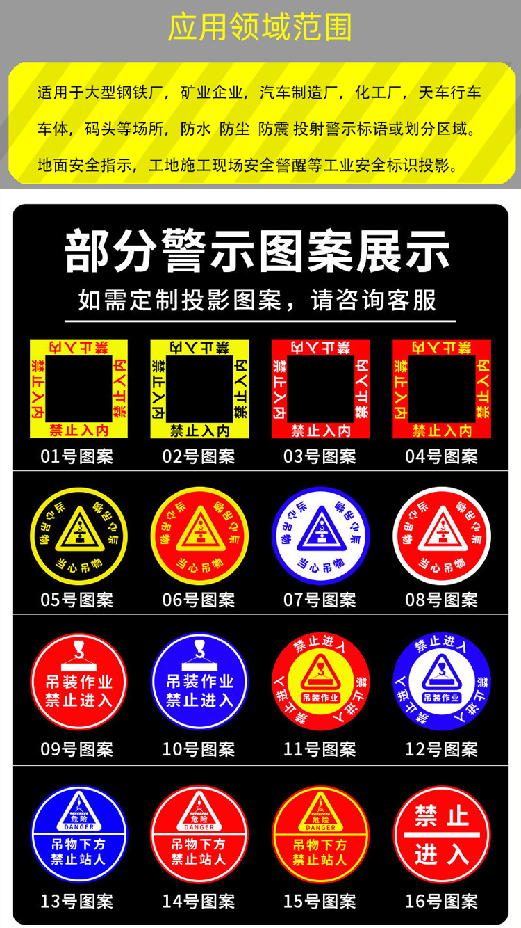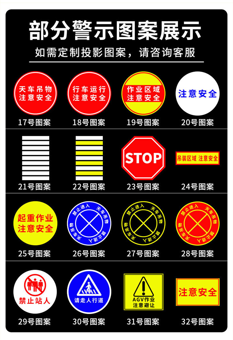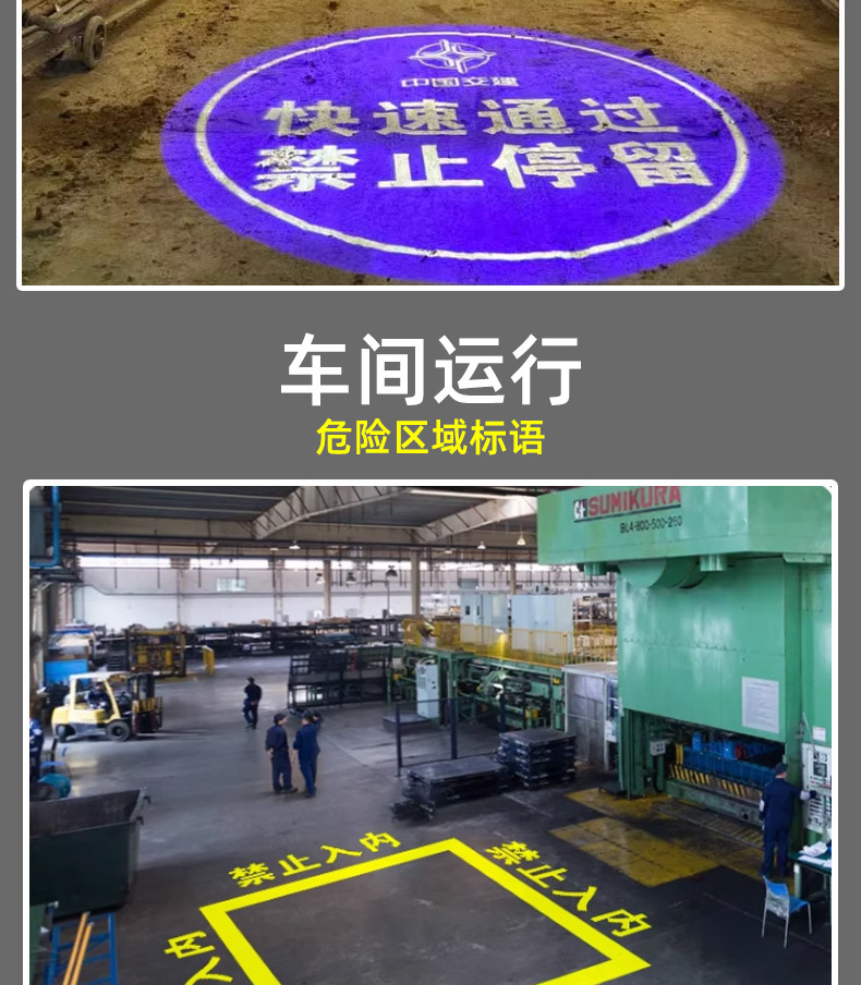 大功率的广告投影灯则能很有效的起到警示作用,灯具安装在行车上,跟随行车的运动方向,灵活的投影警示标志