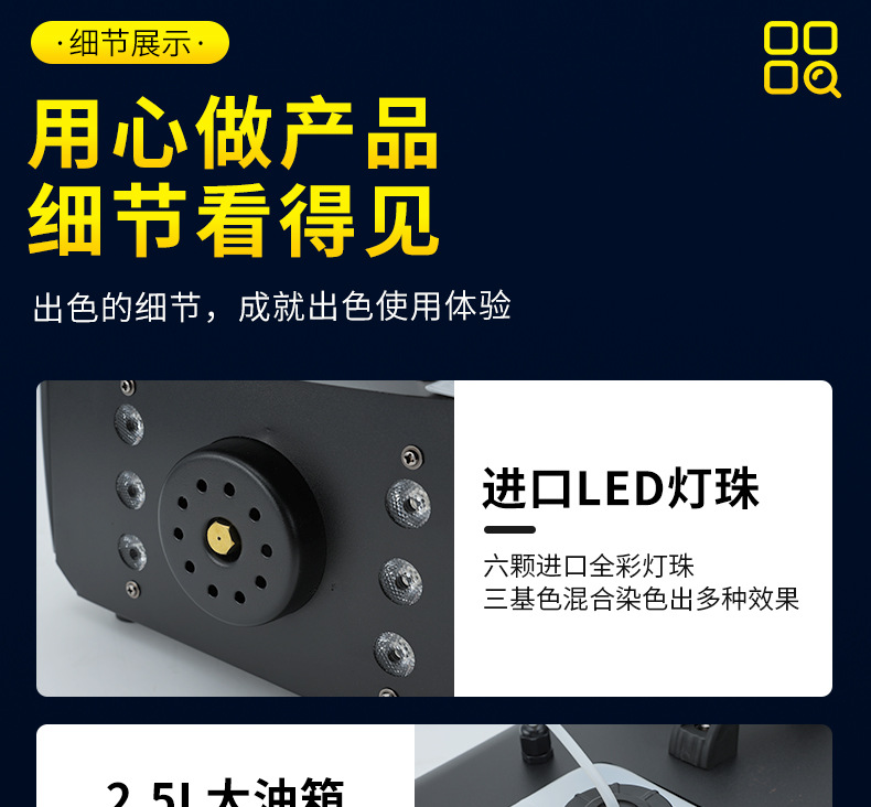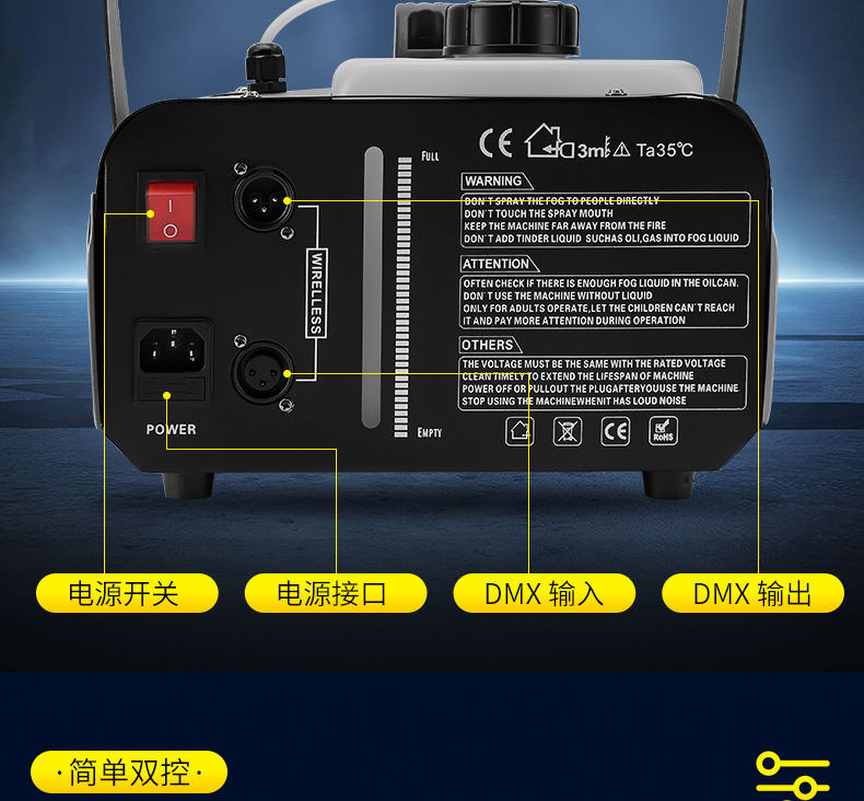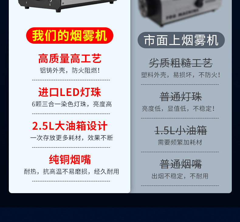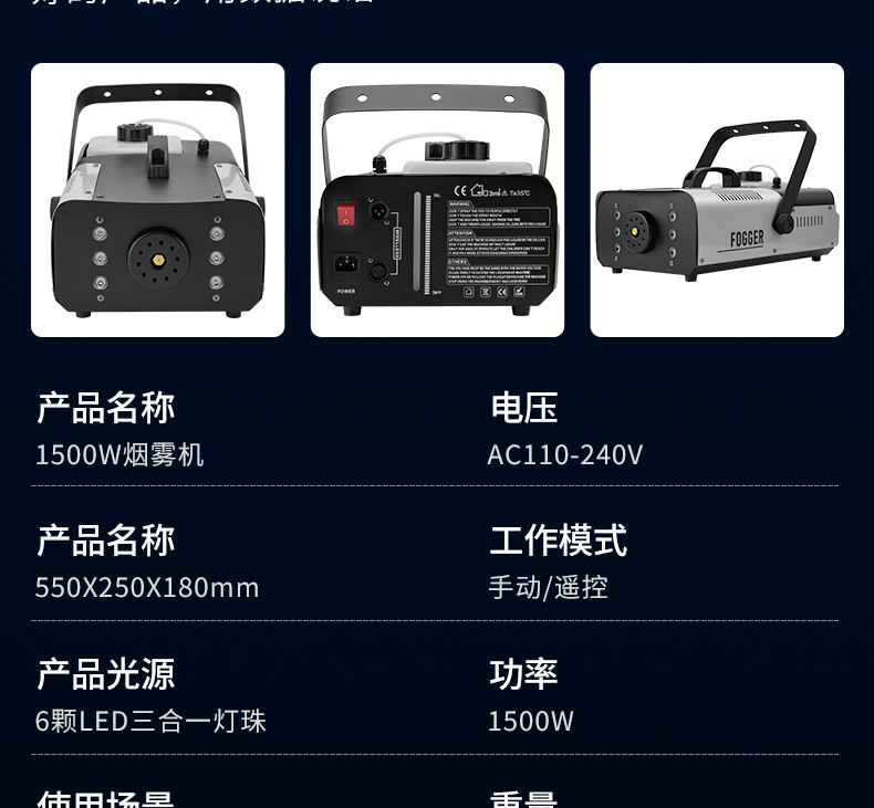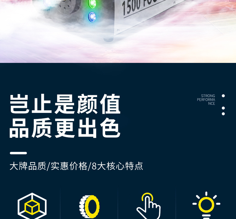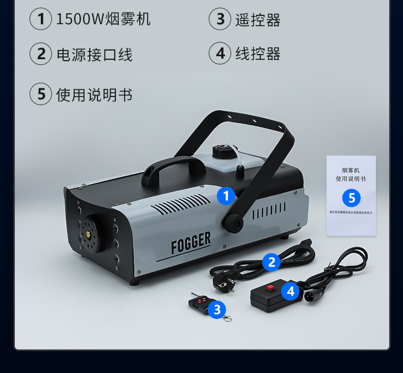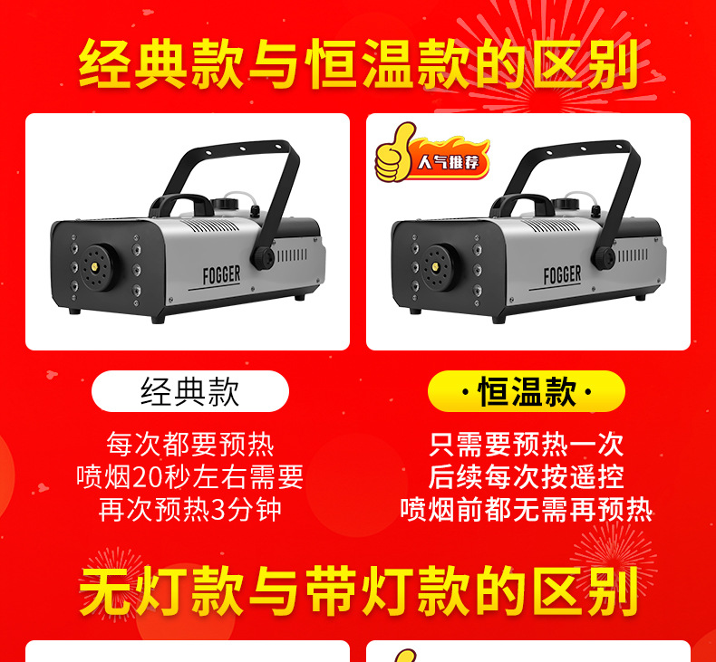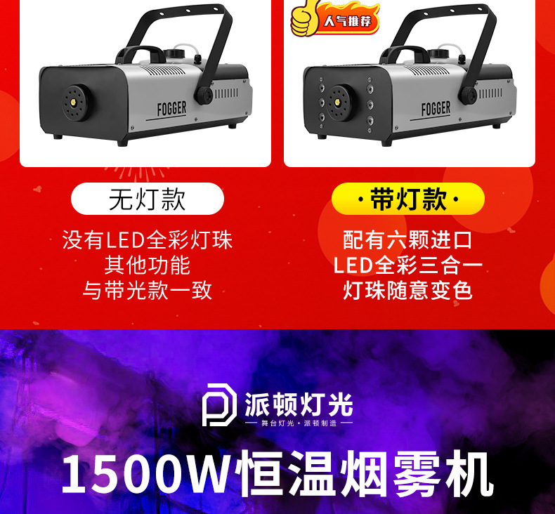Mesin asap suhu konstan Patton 1500w, mesin asap elektronik kecil, mesin semprot warna-warni LED panggung berdaya tinggi