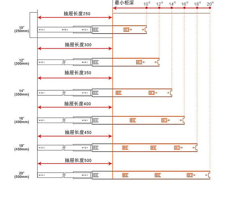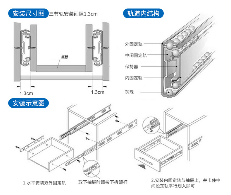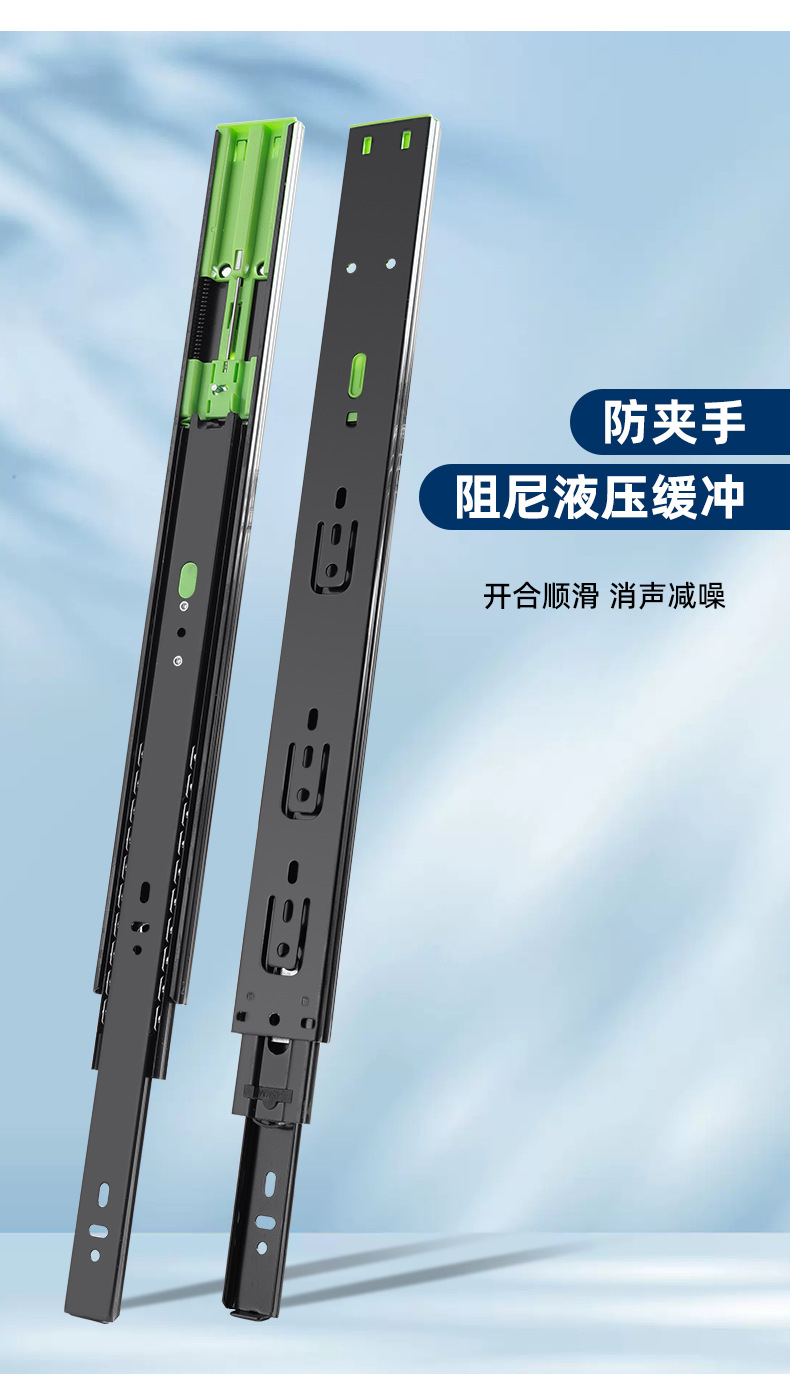 Laci tiga bagian, jalur furnitur lemari kabinet geser rebound tebal baja gulung dingin