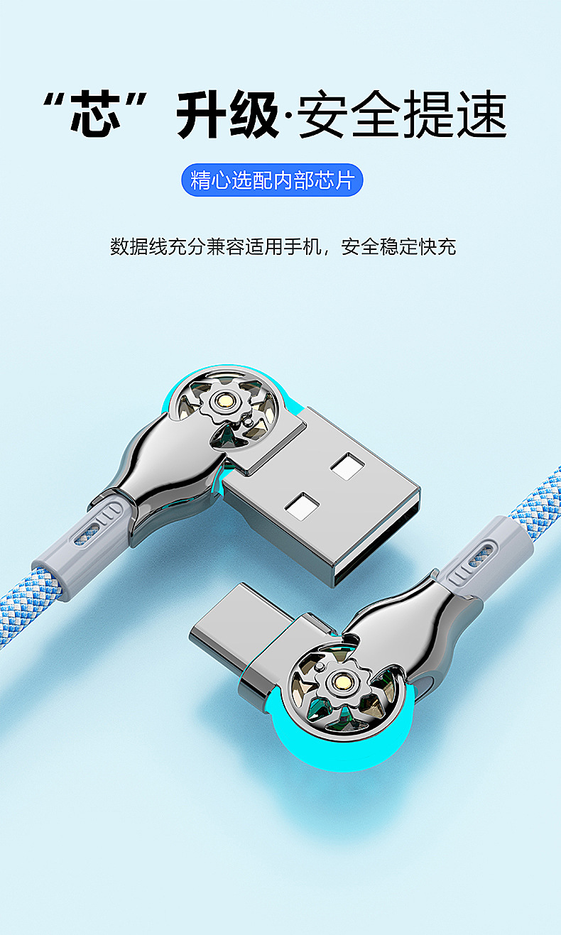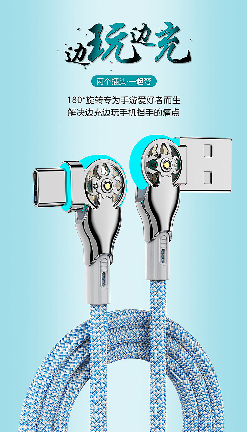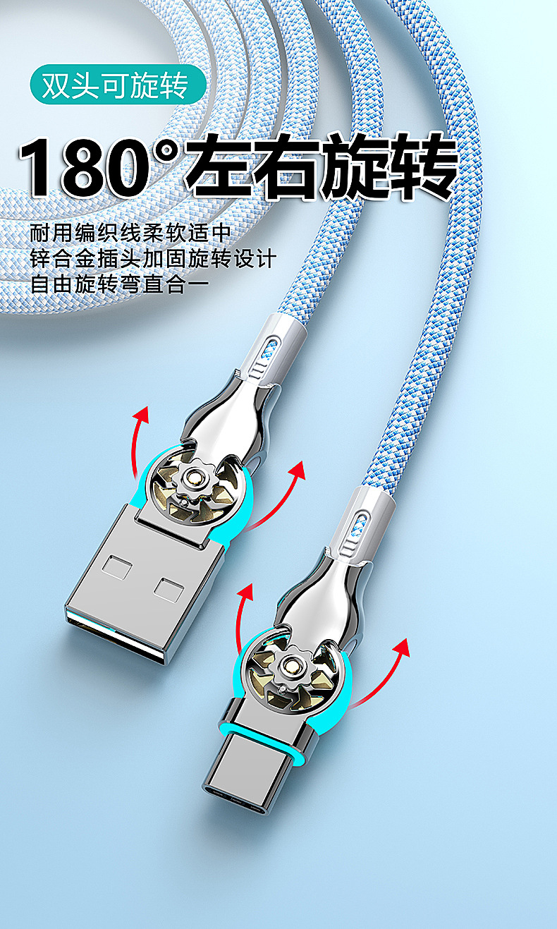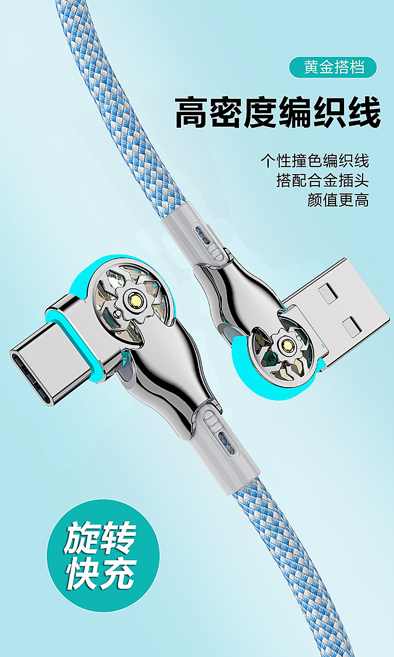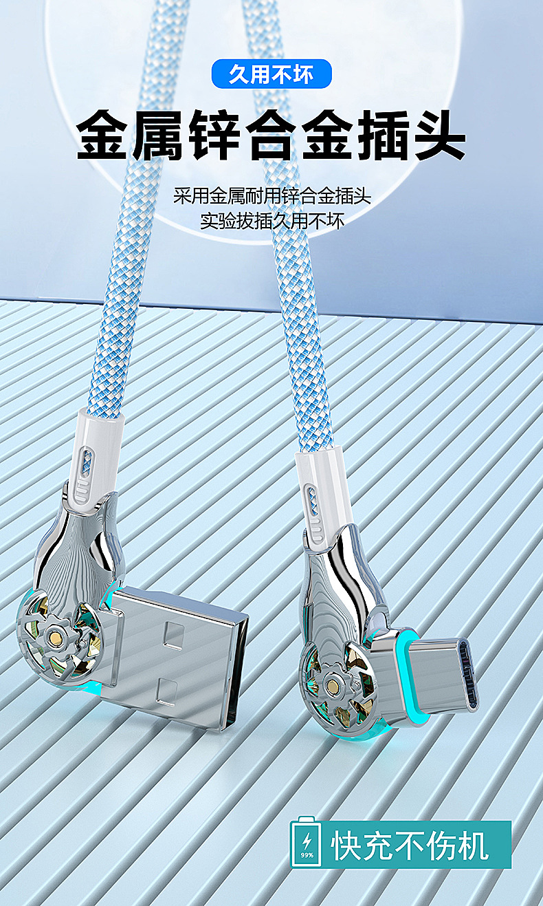 Kabel data pengisian daya cepat untuk mobil, kabel pengisian daya ponsel Android Apple, kabel pengisian daya Cepat tipe-c panjang, lampu berputar siku ganda
