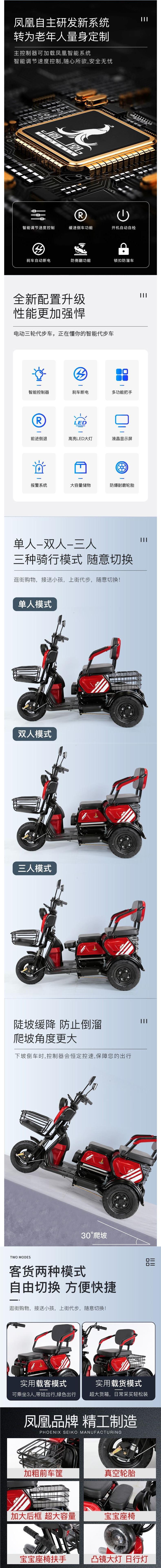 乐凰电动三轮车家用小型电瓶车老人老年代步车接送孩子电三轮新款