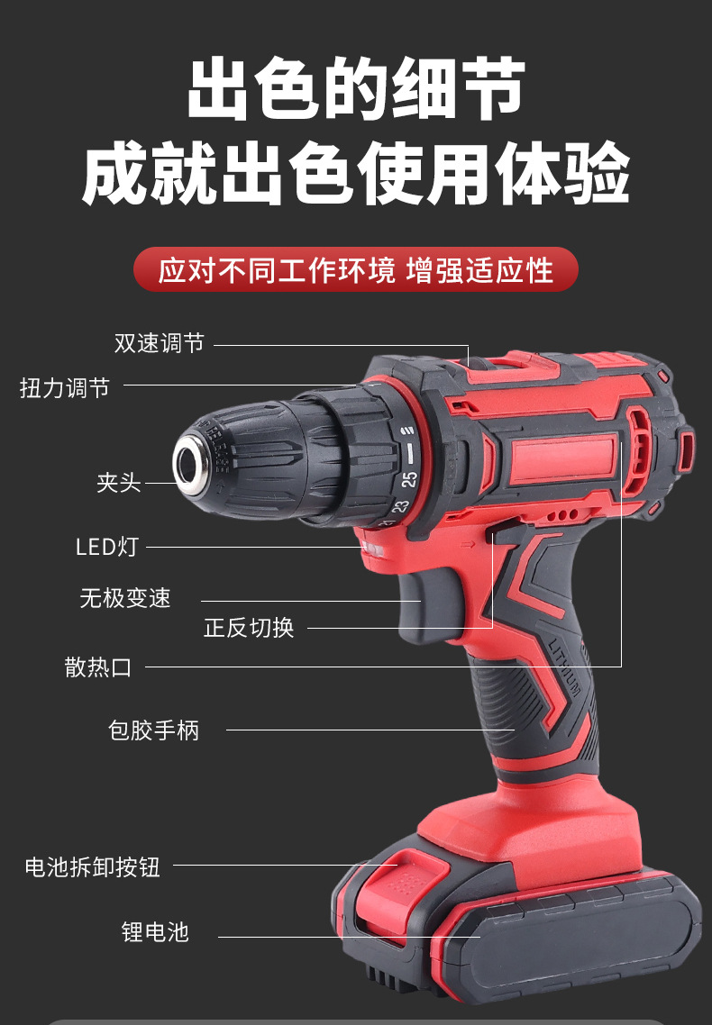 Bor Listrik Li-Listrik 21V Daya Tinggi Lintas Batas Perdagangan Luar Negeri Bor Multifungsi Mesin Obeng Li-Listrik Set Bor Dampak