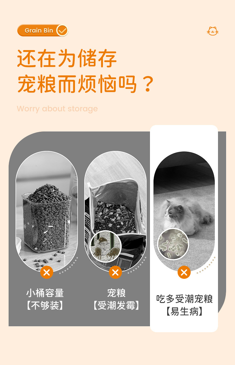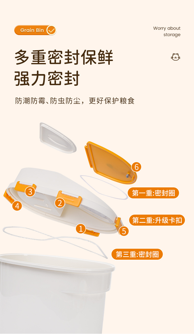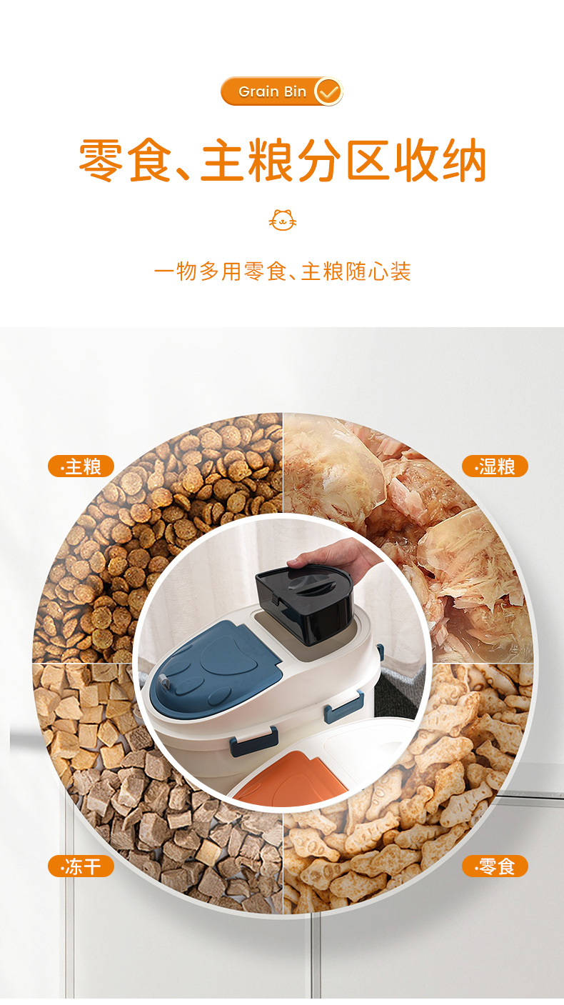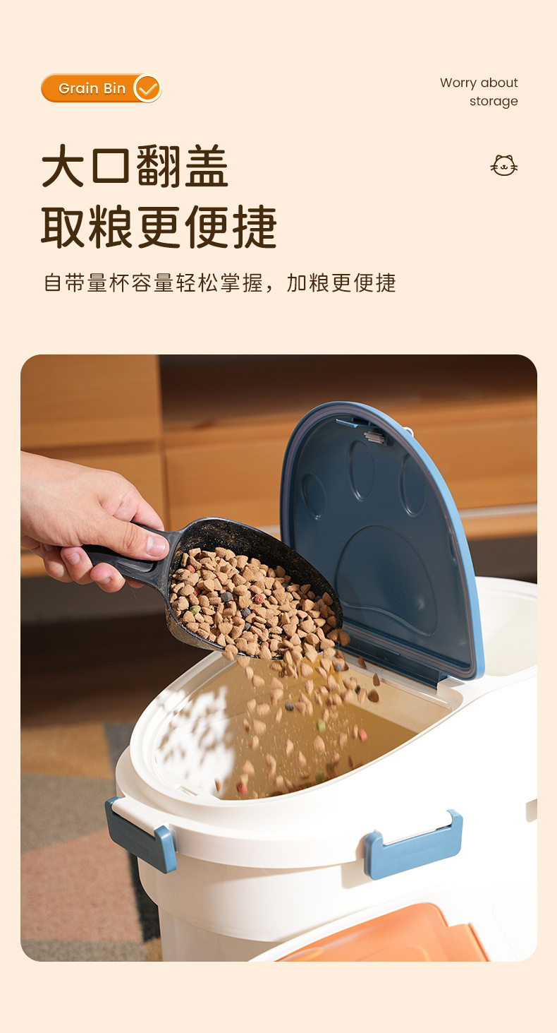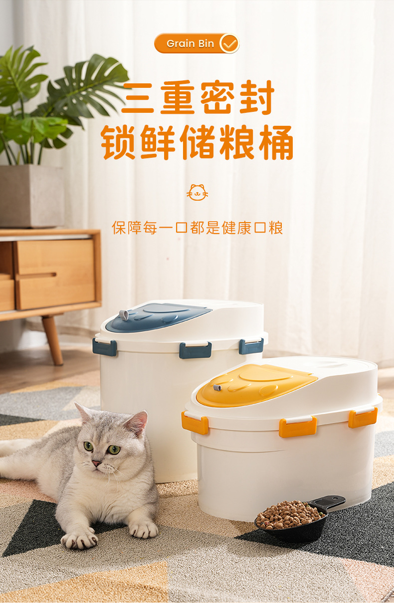 Ember penyimpanan makanan anjing kapasitas besar, ember penyimpanan makanan kucing, anti lembab dan anti jamur 10kg, ember penyimpanan makanan ringan