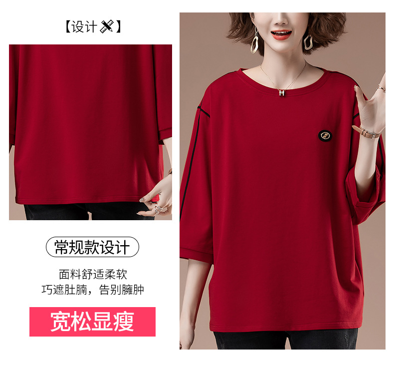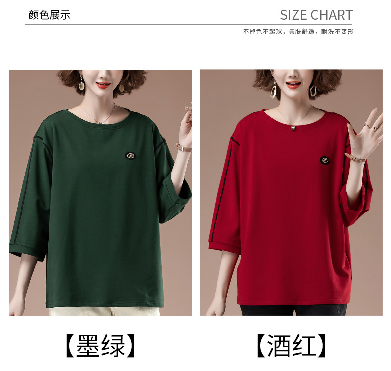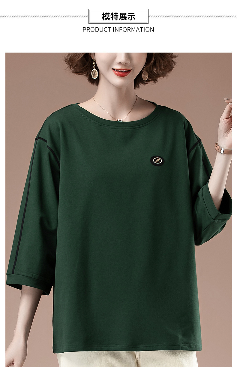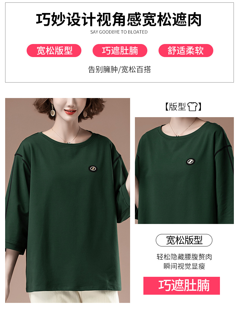 春夏七分袖t恤女加肥加大码女装宽松中年妈妈休闲中袖打底衫9835