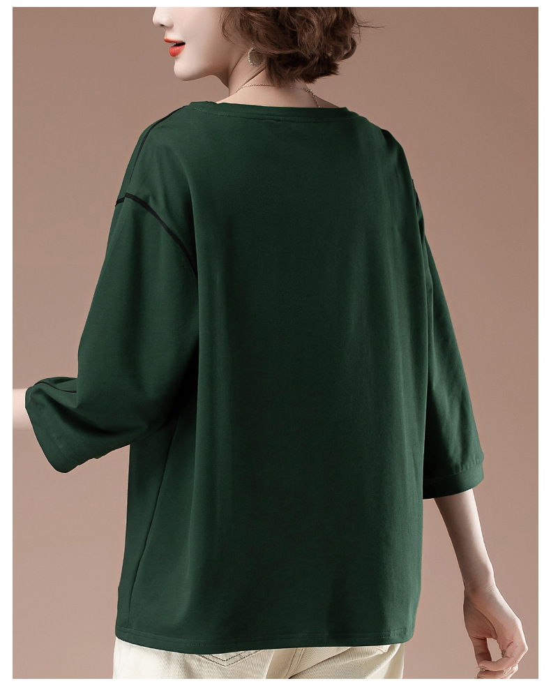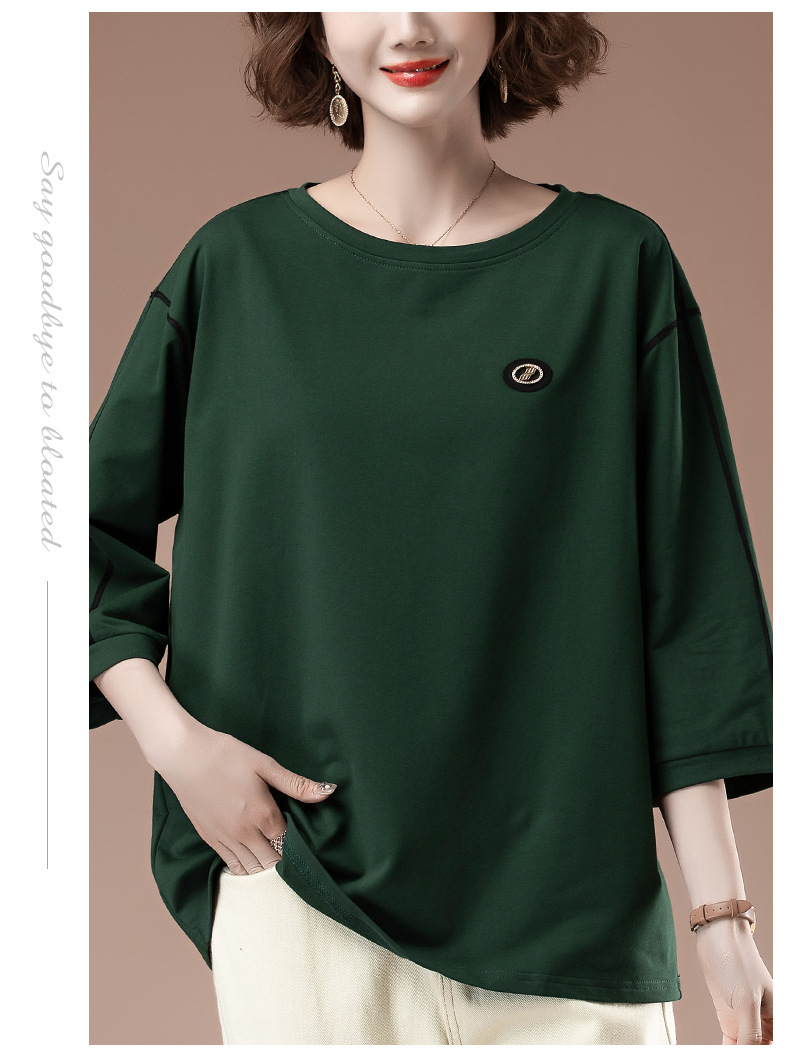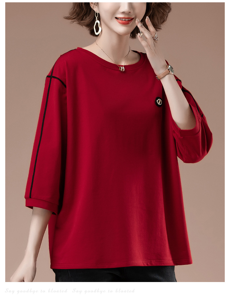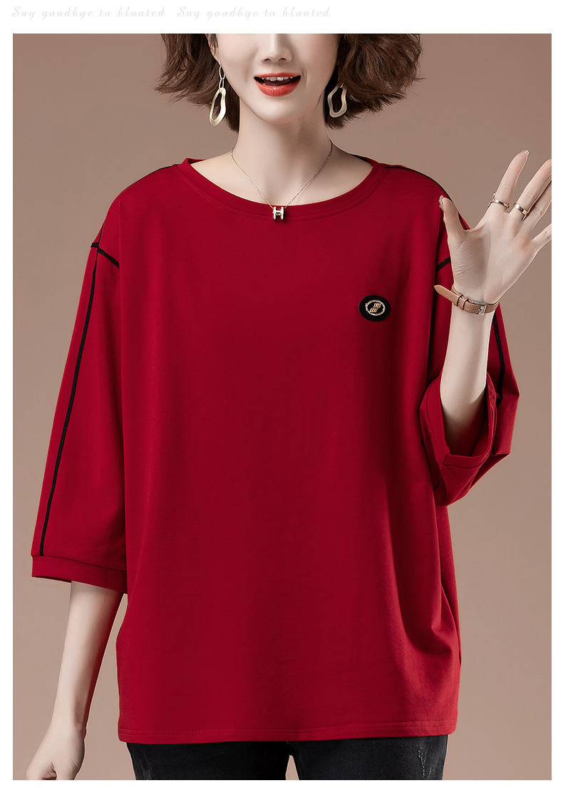 春夏七分袖t恤女加肥加大码女装宽松中年妈妈休闲中袖打底衫9835