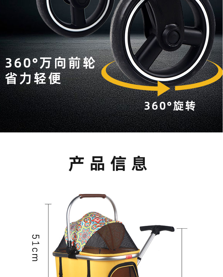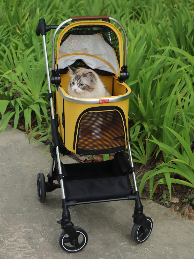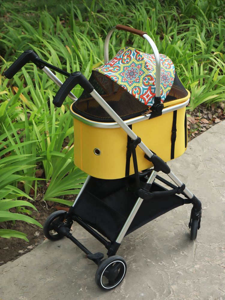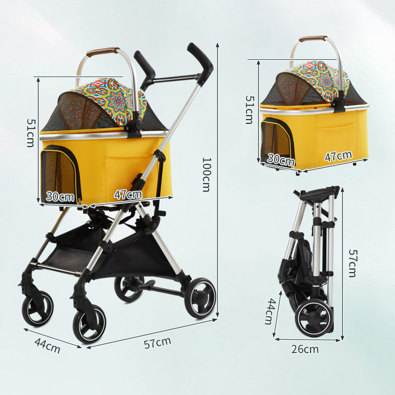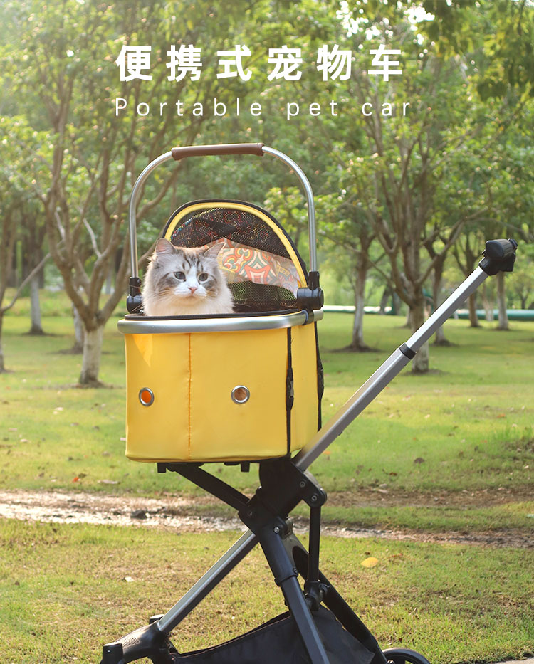 Trilelove kereta dorong hewan peliharaan, keranjang terpisah anjing kucing ringan dapat dilipat anjing kecil Teddy