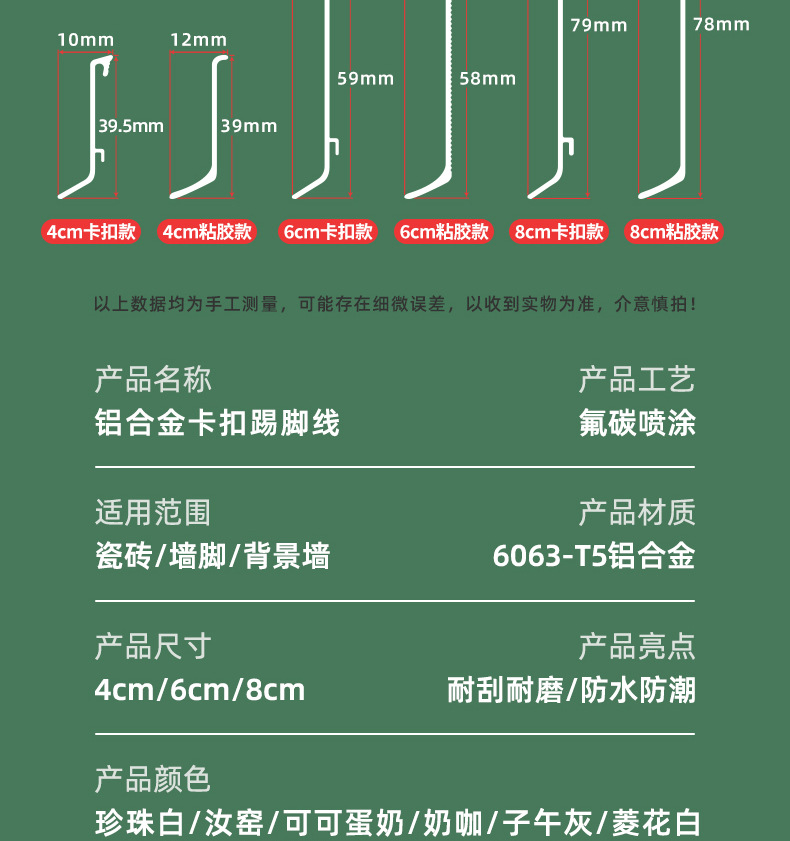 Garis tepi paduan aluminium, garis tepi gaya krim ultra tipis pasang dinding 6cm sederhana 8cm