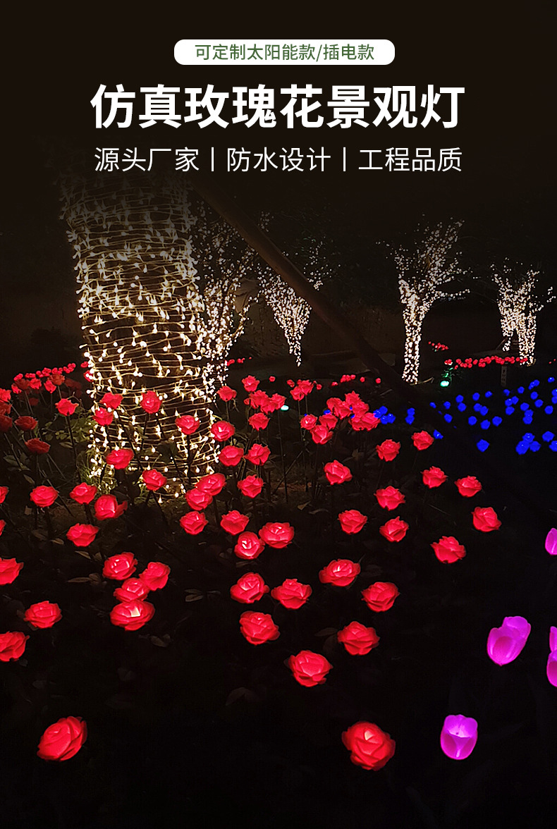Lampu Lantern Bunga Mawar Lampu Rumput Dekorasi Tahan Air Luar Ruangan Taman Lantai Lantai Tenaga Surya Lampu Lantern Bunga Imitasi