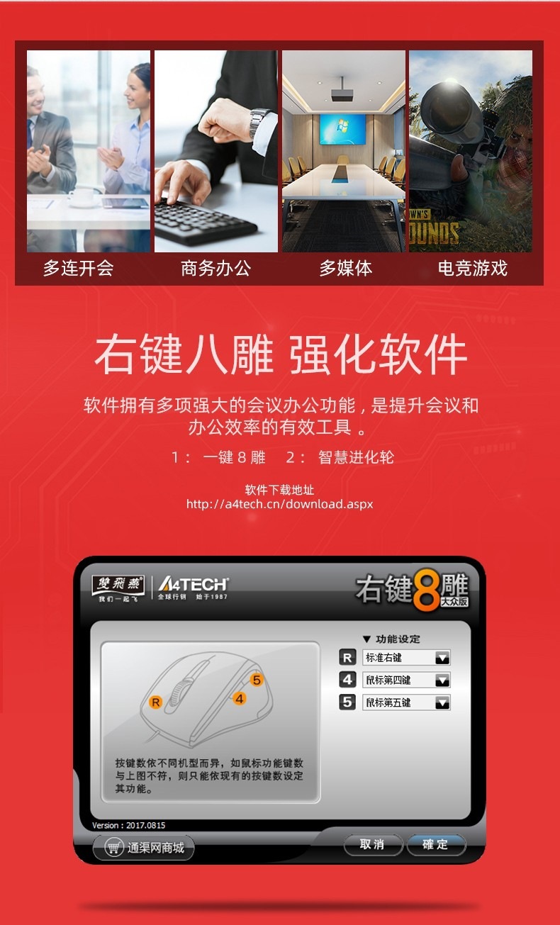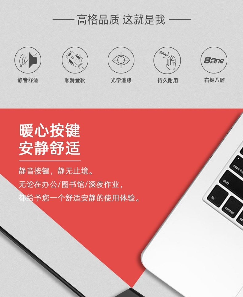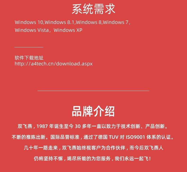 鼠标采用双飞燕独有的针光技术,让鼠标有着更强大的表面材质兼容性。