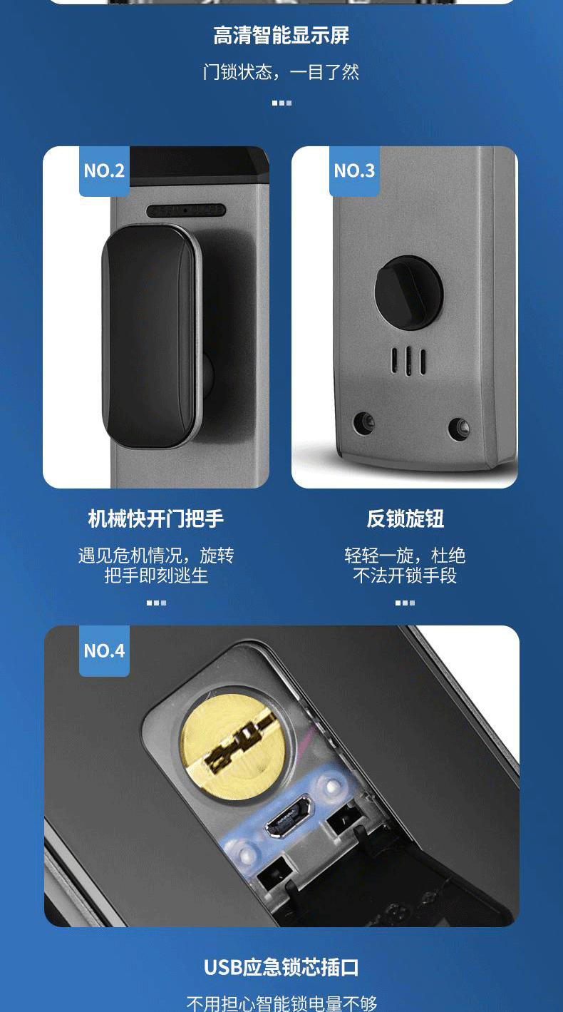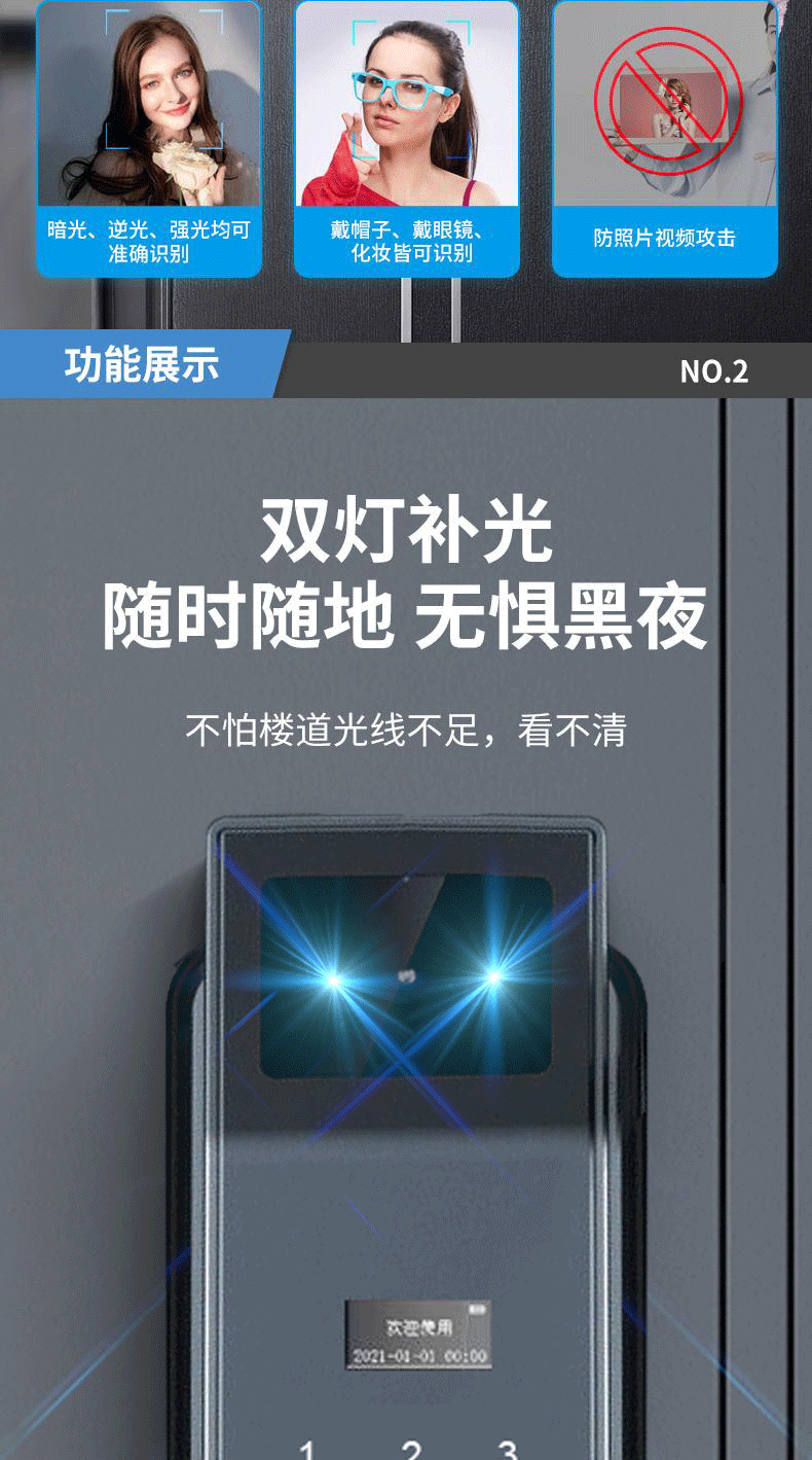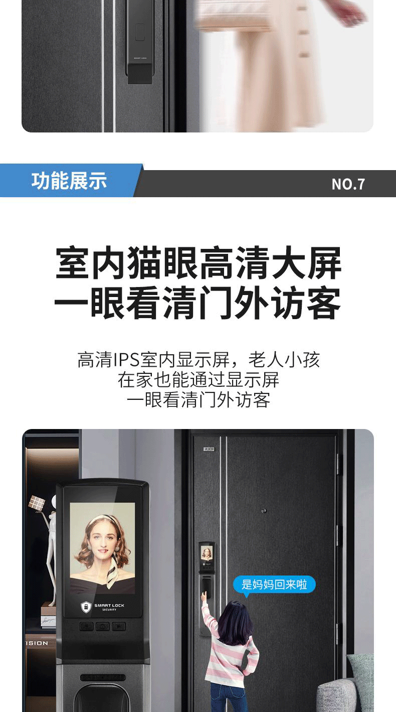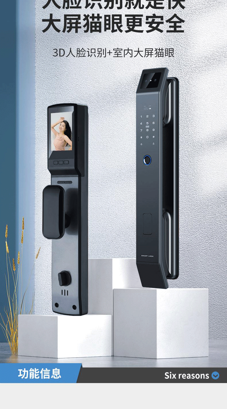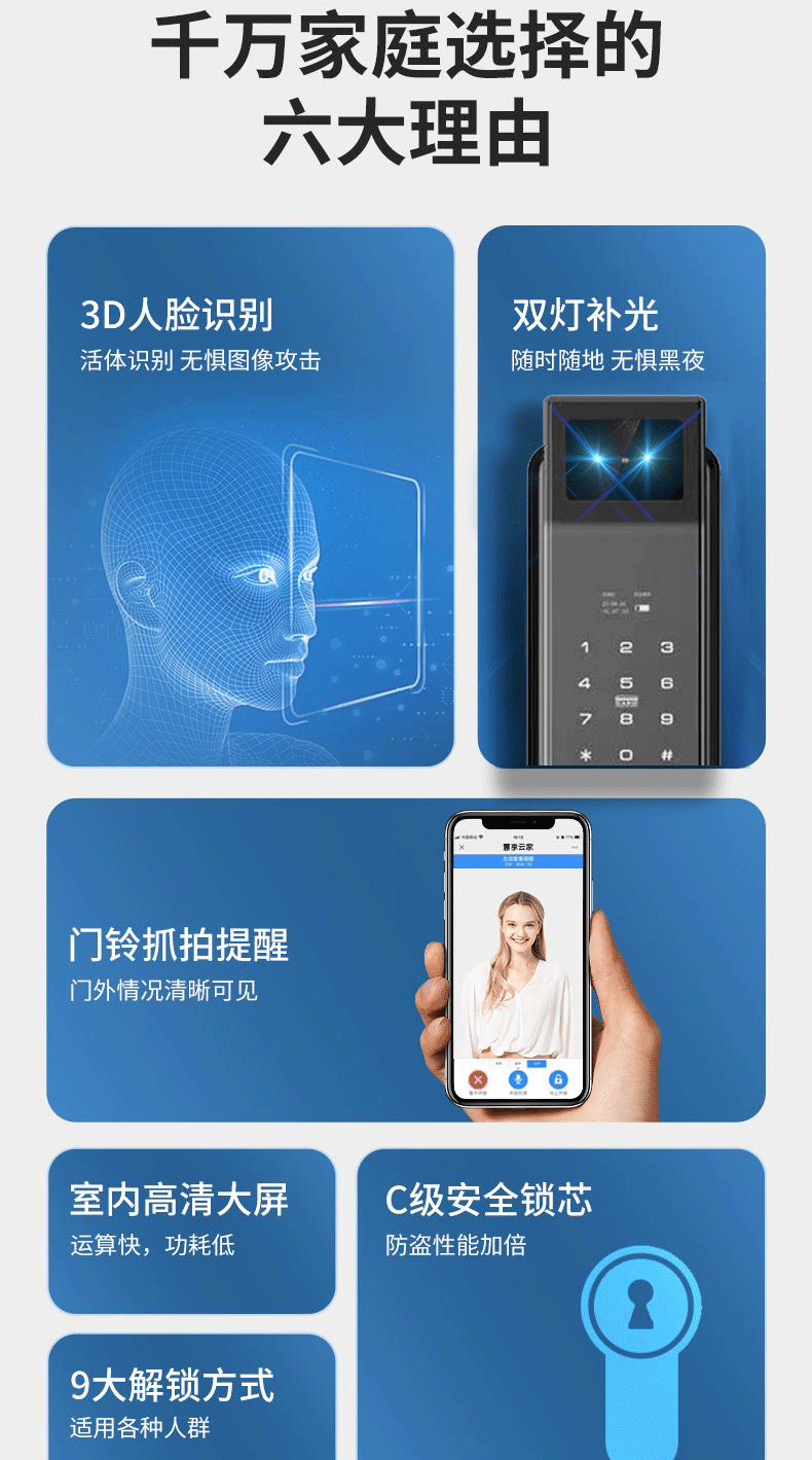 Kunci Pintu anti pencurian, kunci pintu rumah tangga sidik jari pengenalan wajah kunci visual mata kucing kata sandi kunci pintu elektronik