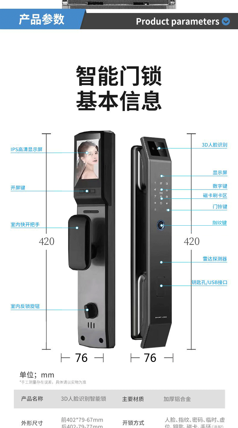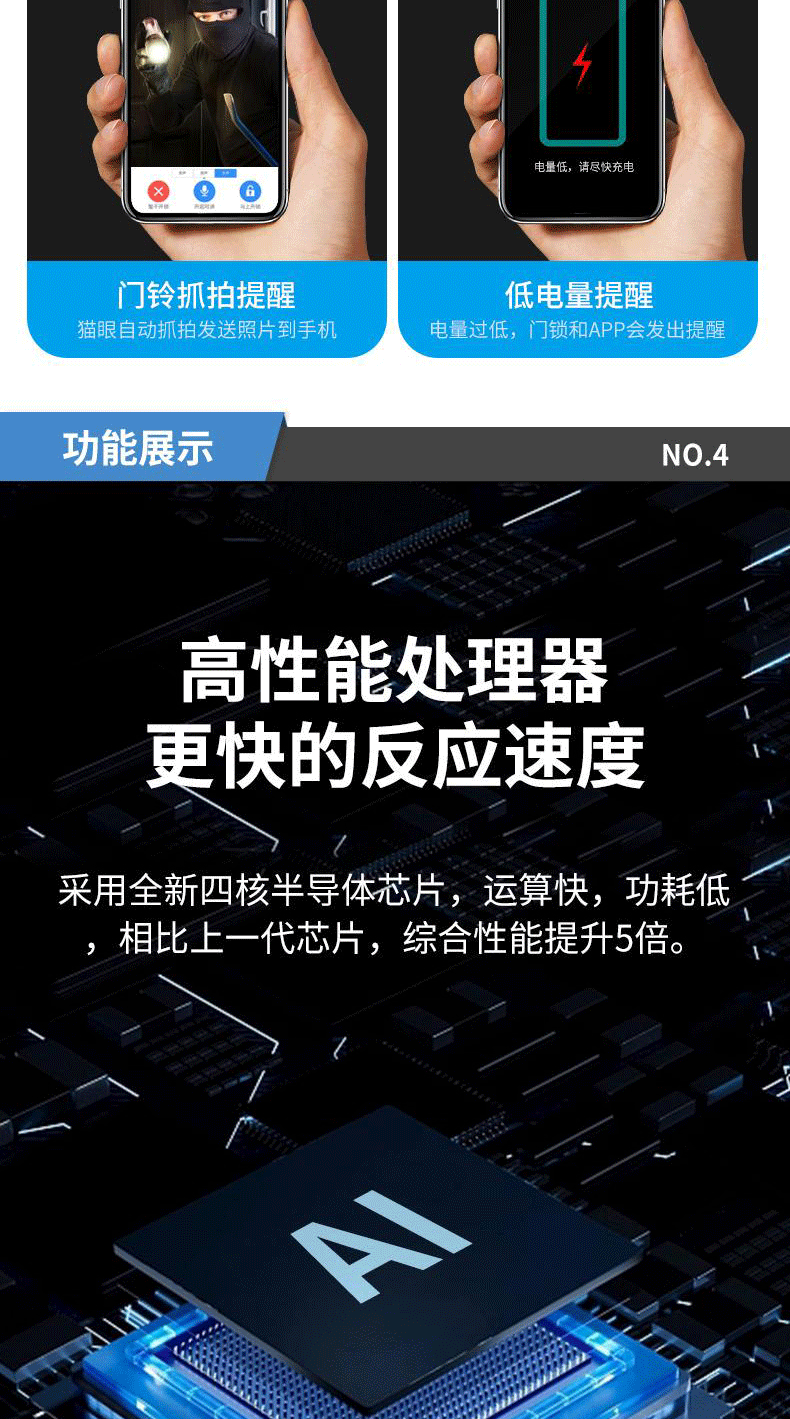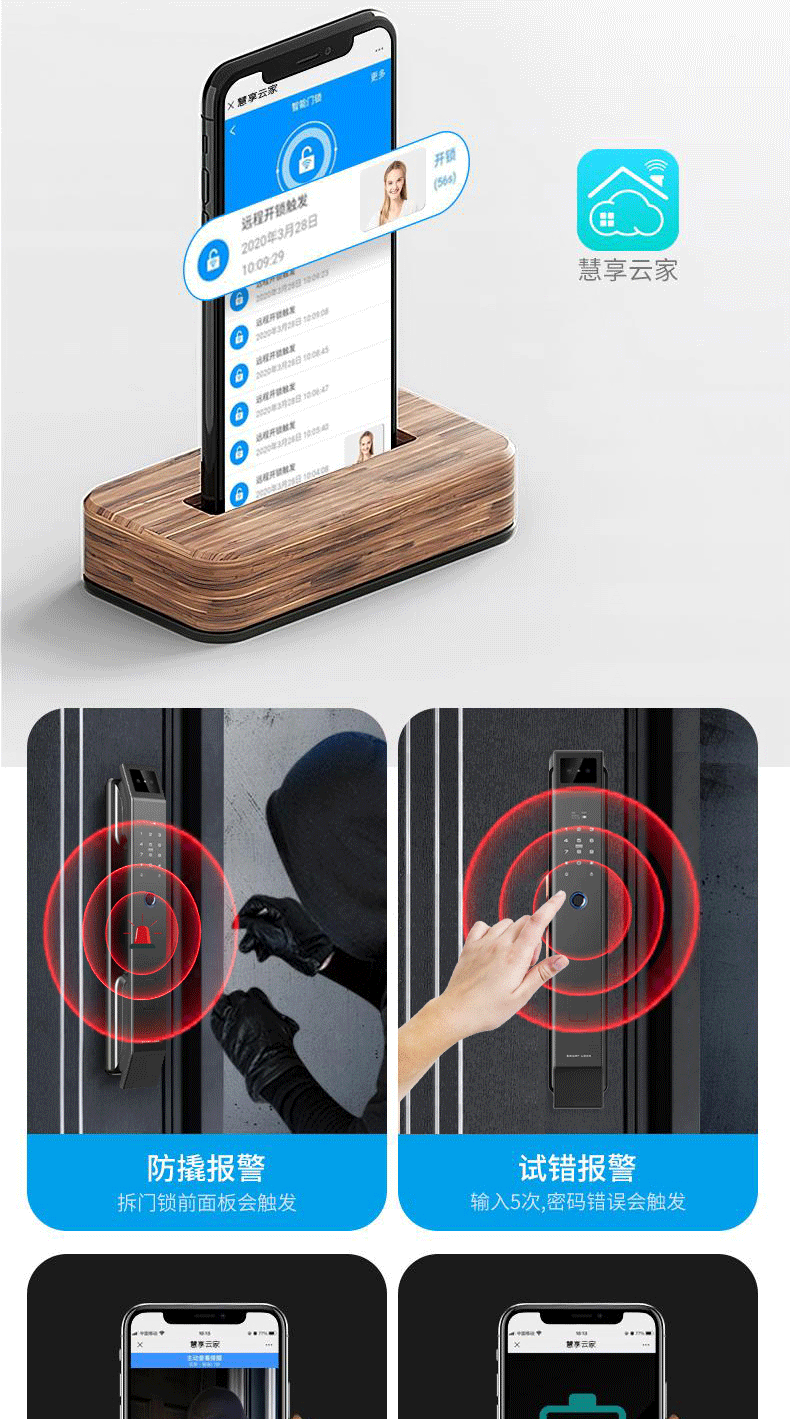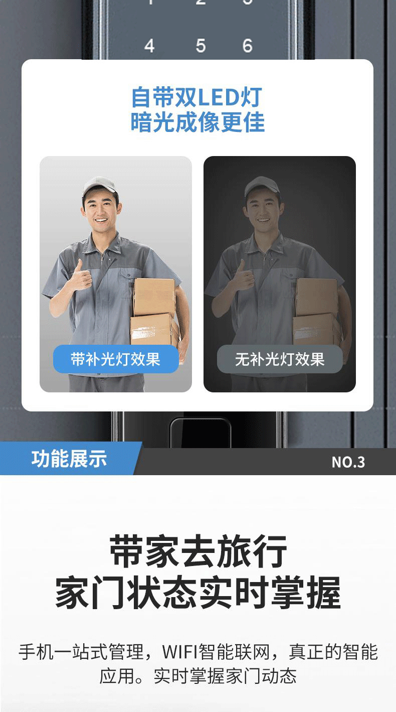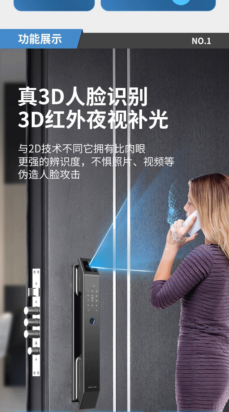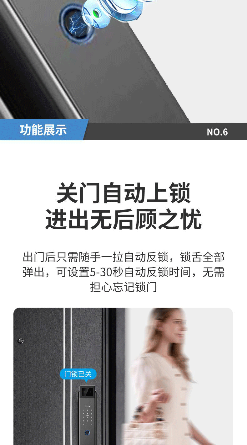 Kunci Pintu anti pencurian, kunci pintu rumah tangga sidik jari pengenalan wajah kunci visual mata kucing kata sandi kunci pintu elektronik