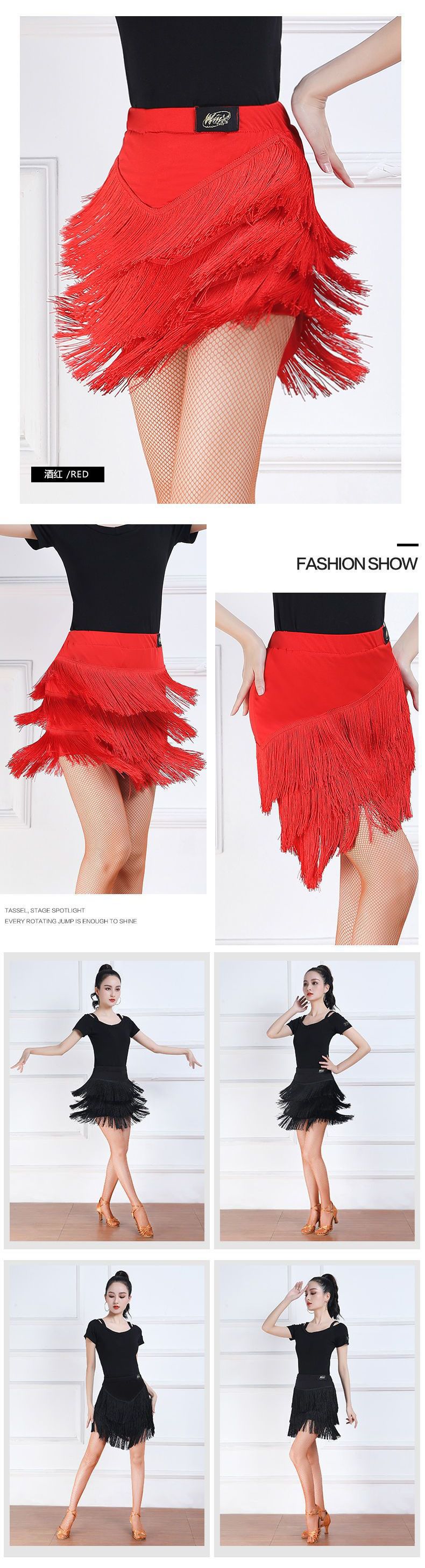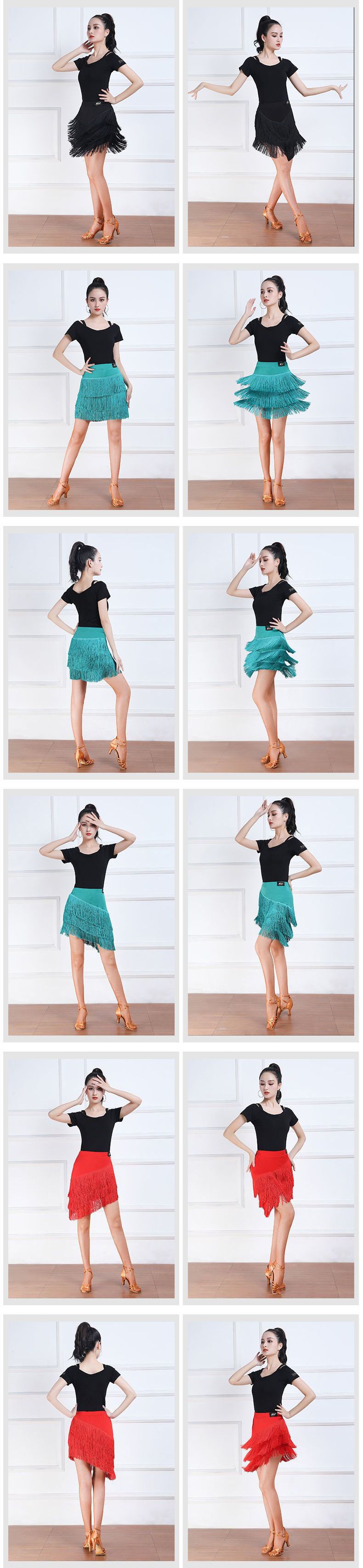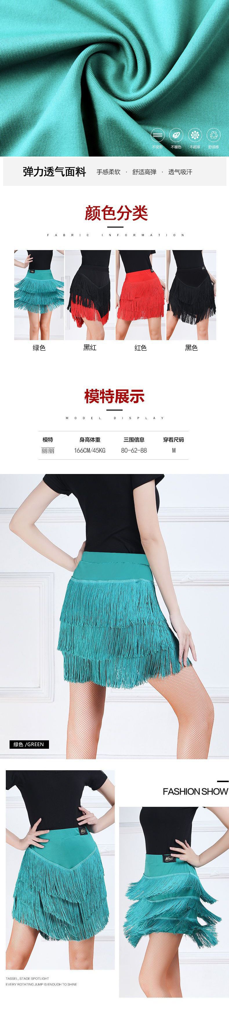 新款拉丁舞流苏裙女士成人短裙下装半身裙拉丁练功裙广场舞裙服装