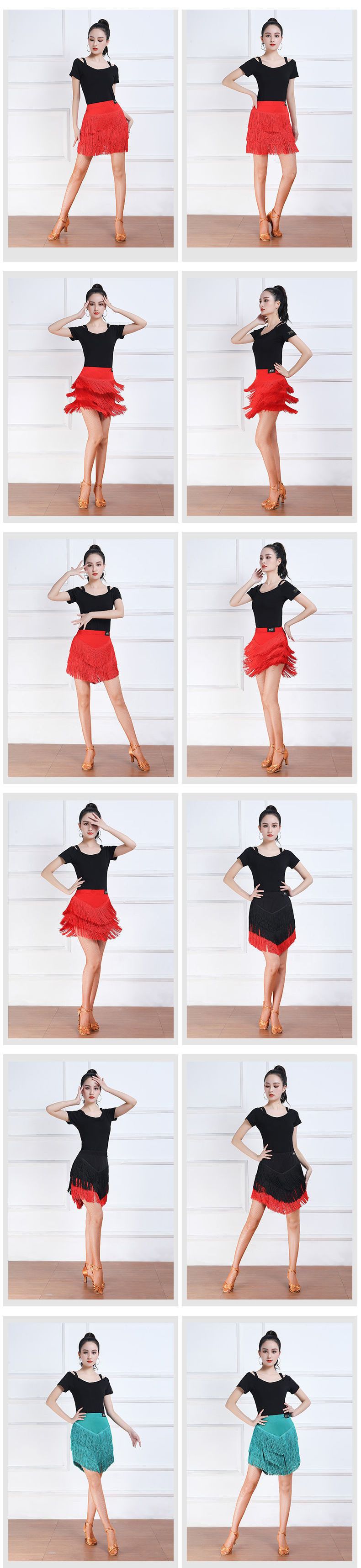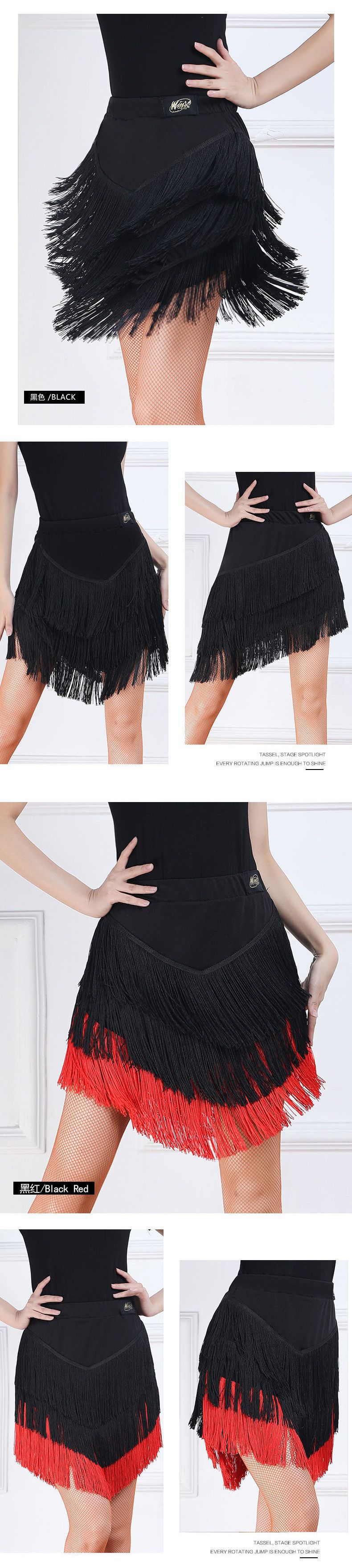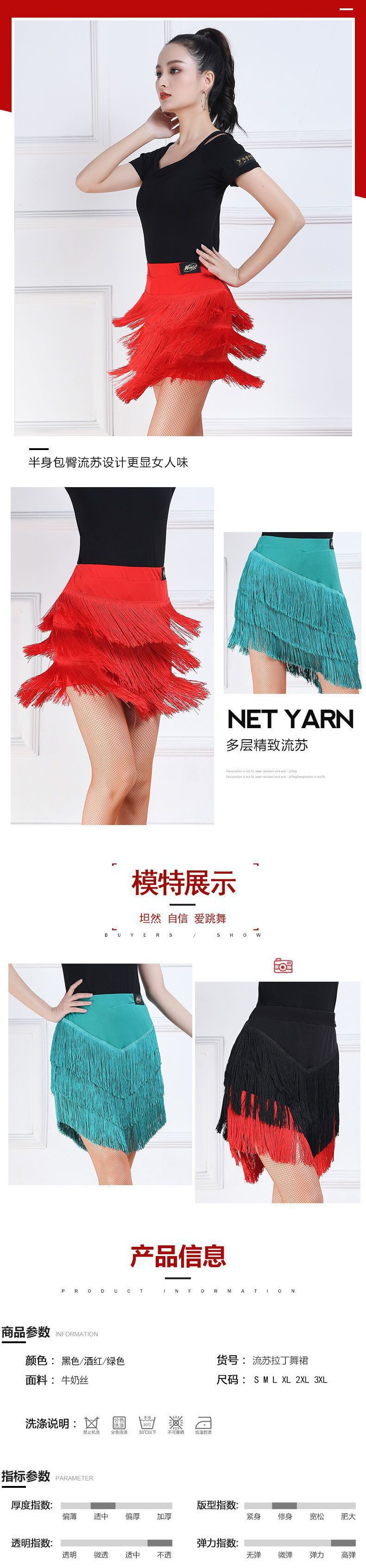 新款拉丁舞流苏裙女士成人短裙下装半身裙拉丁练功裙广场舞裙服装