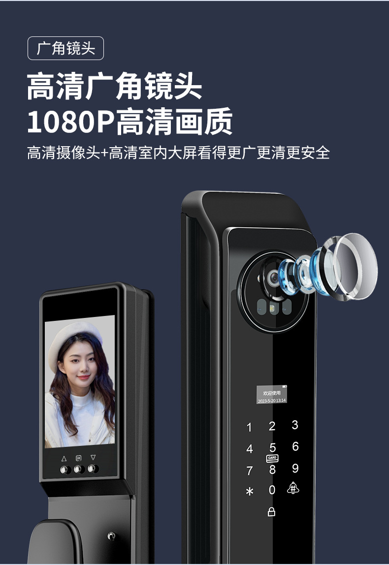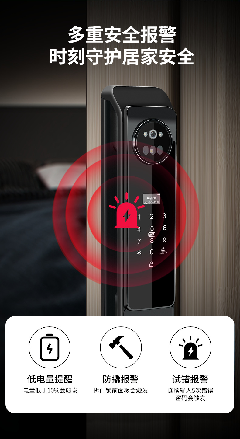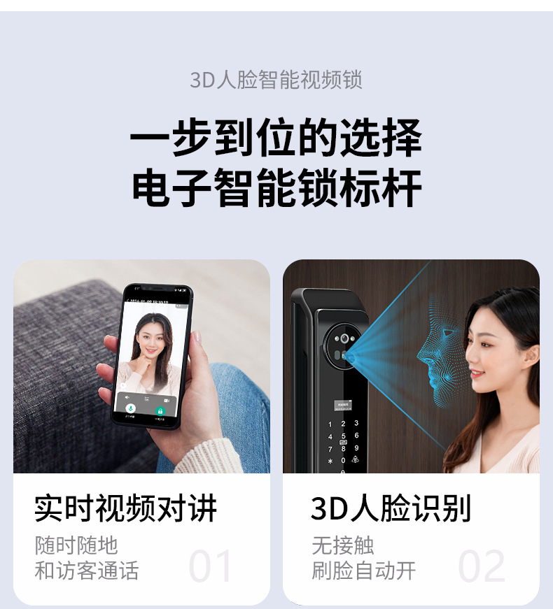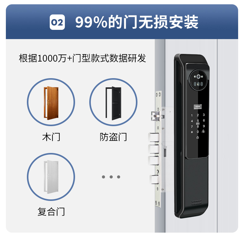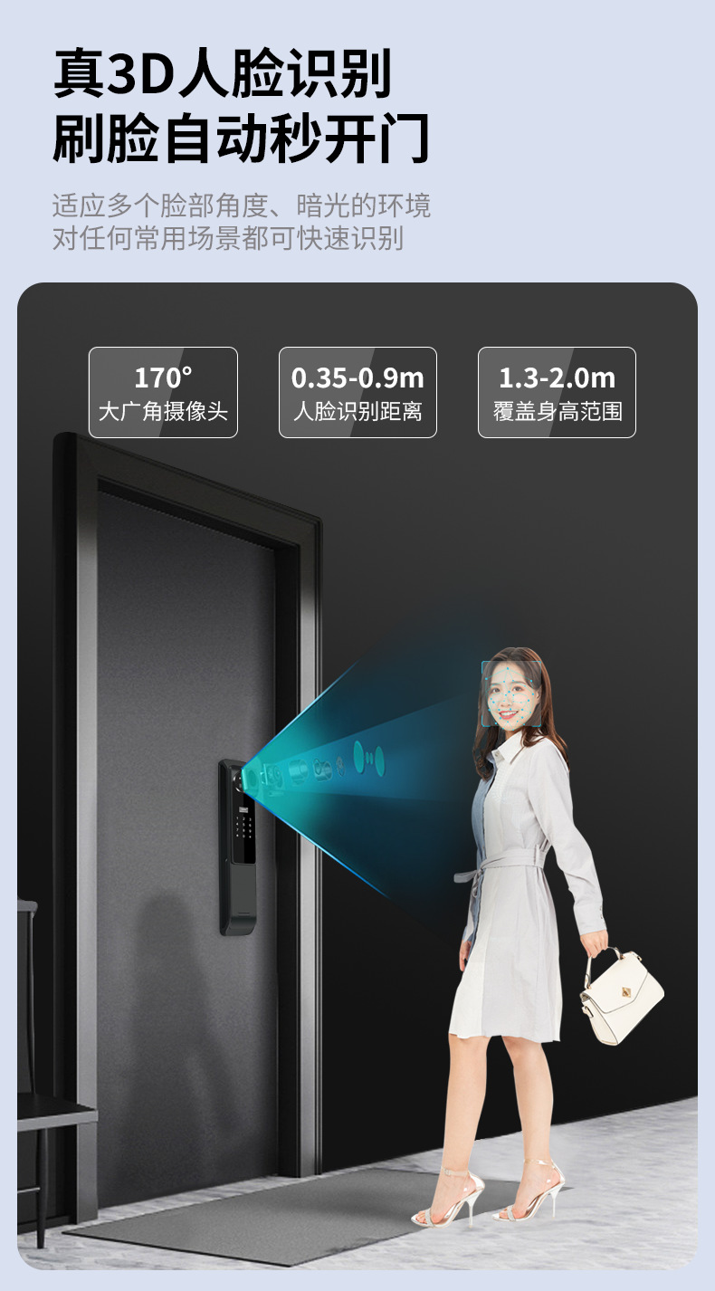 Kunci pintar otomatis, kunci pintu elektronik jarak jauh, pengenalan wajah 3D dengan kata sandi cerdas