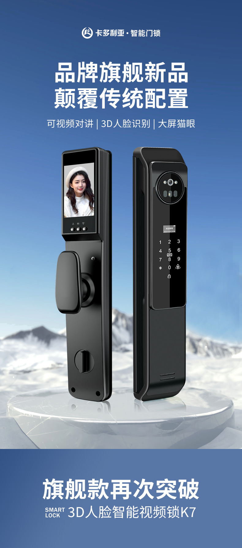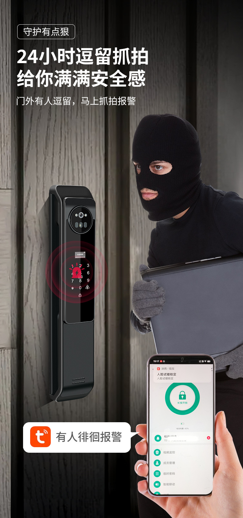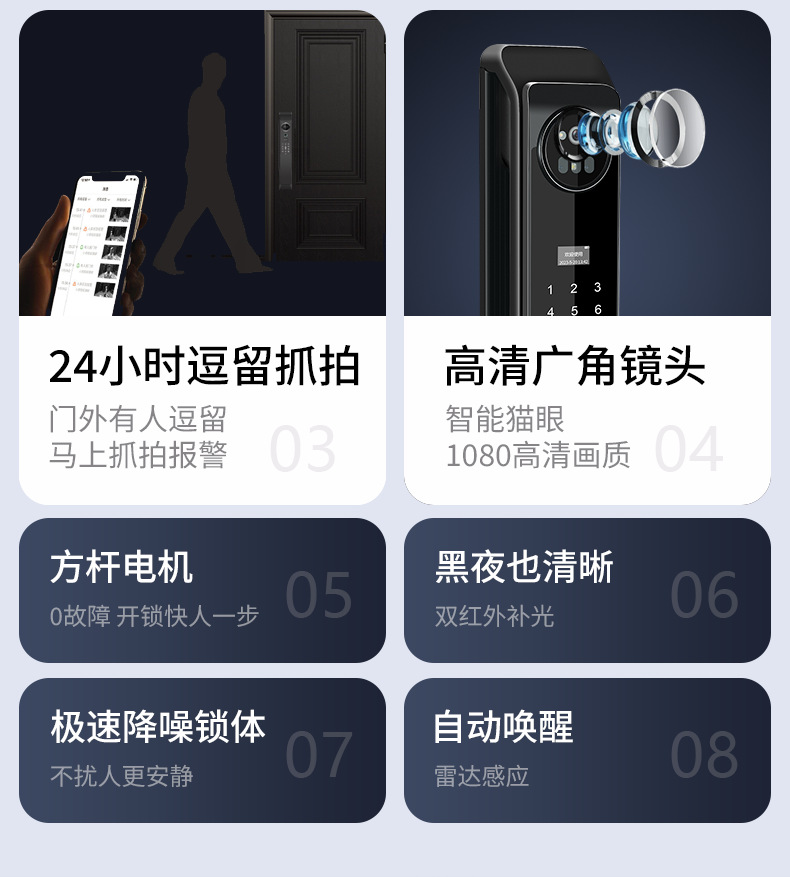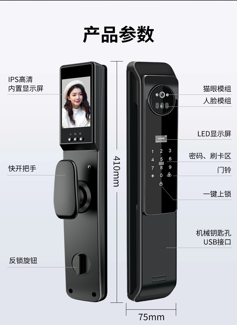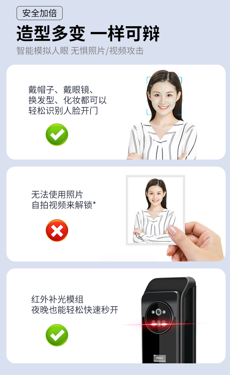 Kunci pintar otomatis, kunci pintu elektronik jarak jauh, pengenalan wajah 3D dengan kata sandi cerdas