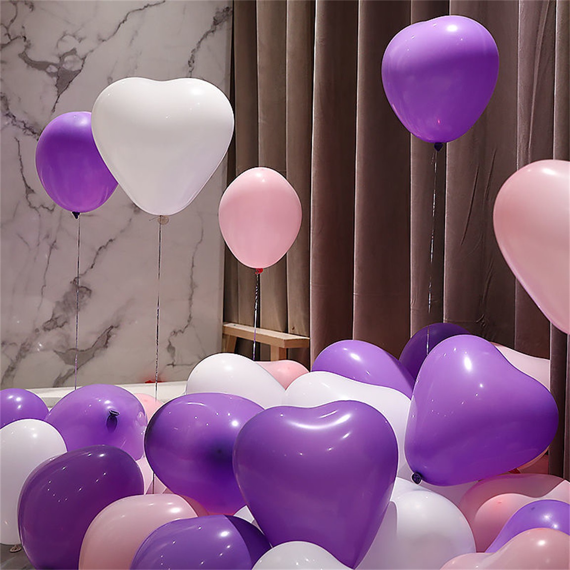 亚马逊马卡龙心形气球加厚告白爱心气球婚房装饰场景生日布置气球