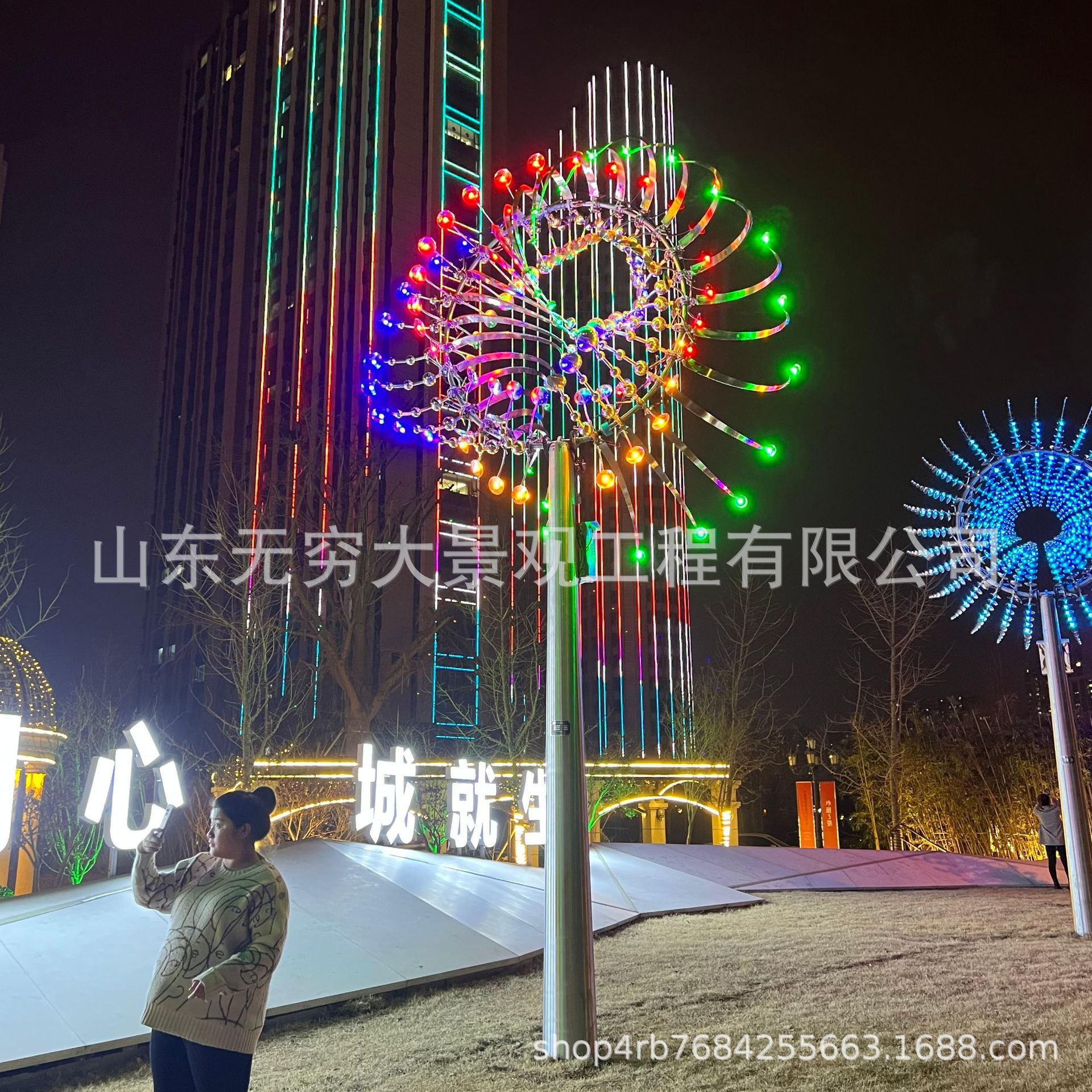 Pneumatik patung baja nirkarat lampu Kota Merah perangkat lanskap pencahayaan luar ruangan lampu hias warna-warni festival
