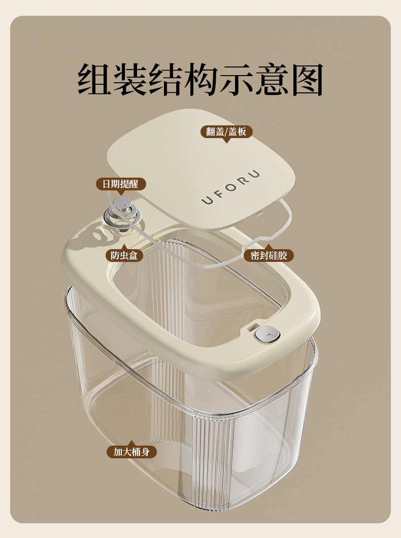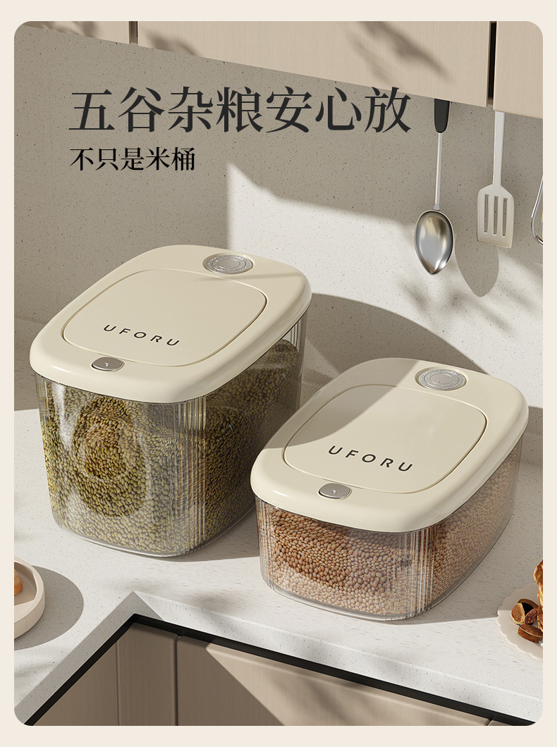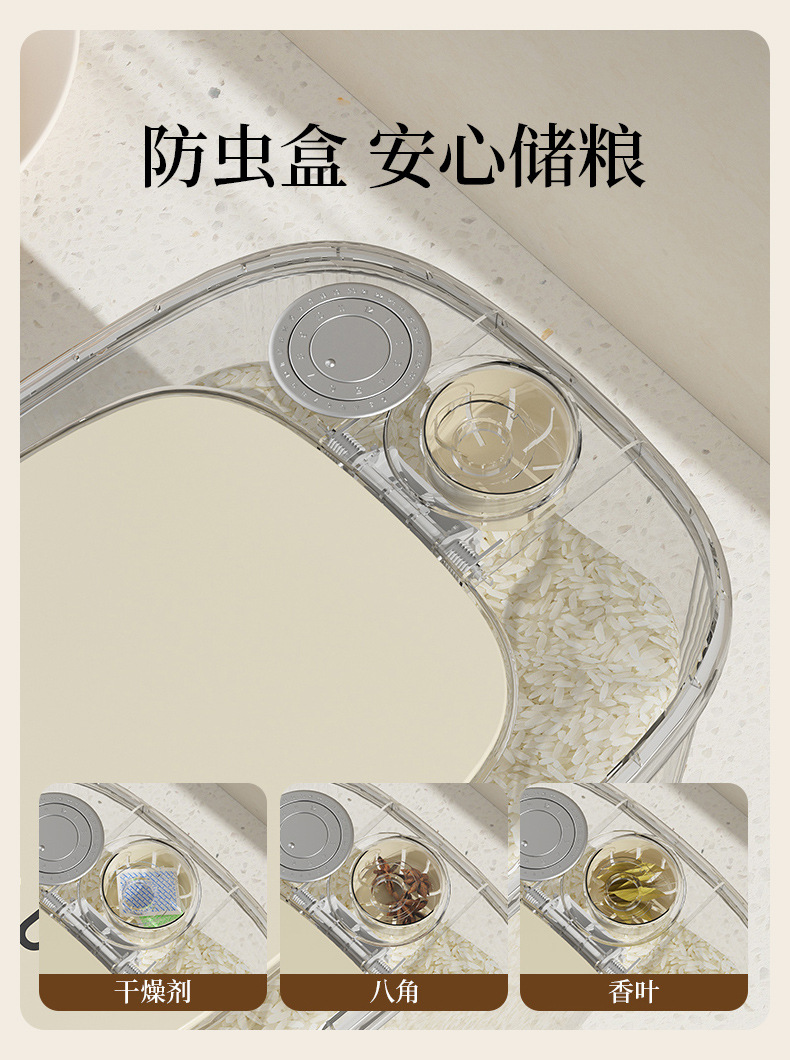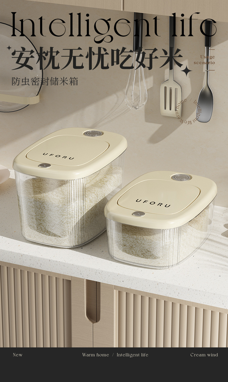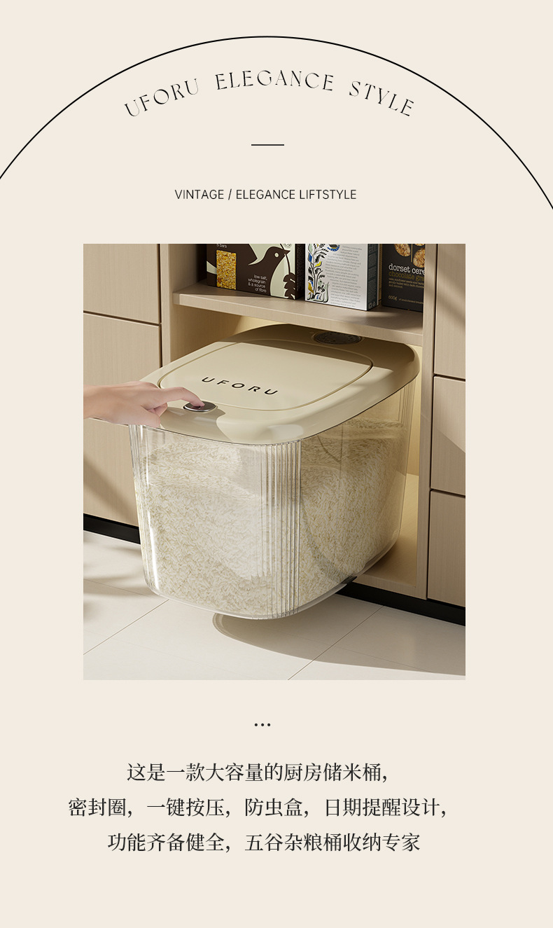 Ember beras kapasitas besar, kotak penyimpanan beras dapur, ember penyimpan gandum rumah tangga, anti lembab, anti serangga, gaya krim