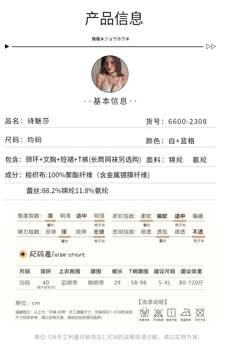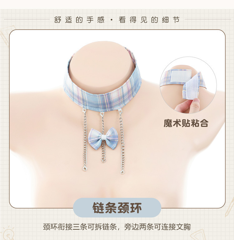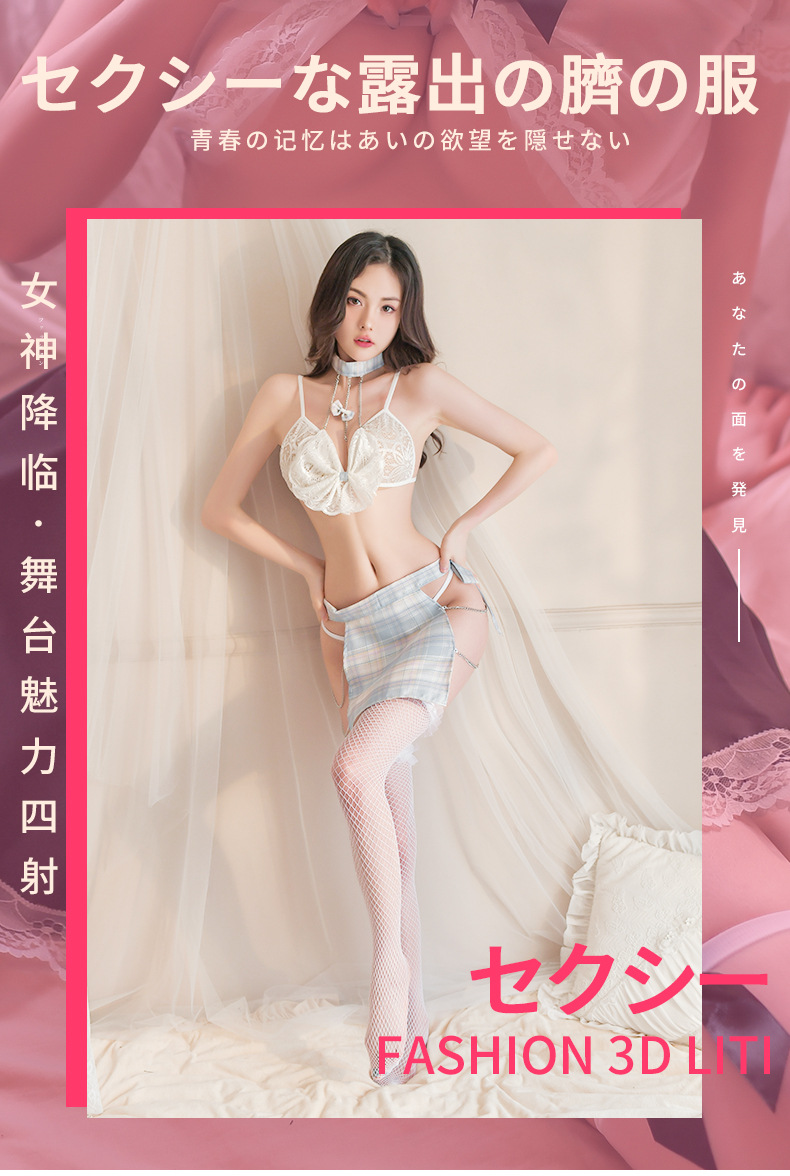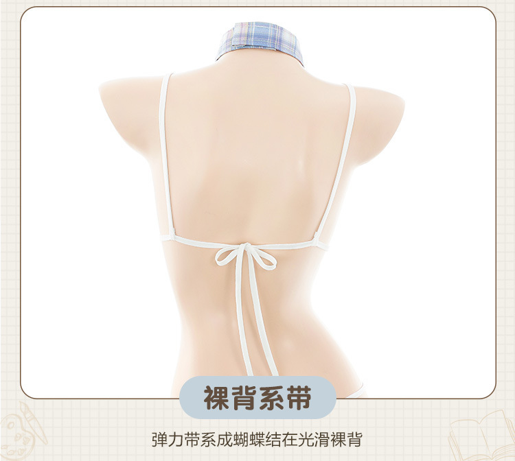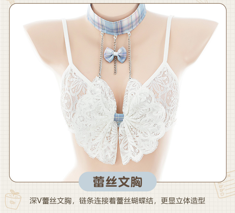 Seragam lingerie seksi gairah menggoda gadis manis rantai busur setelan terpisah rok JK kotak-kotak biru 2308 sweetheart