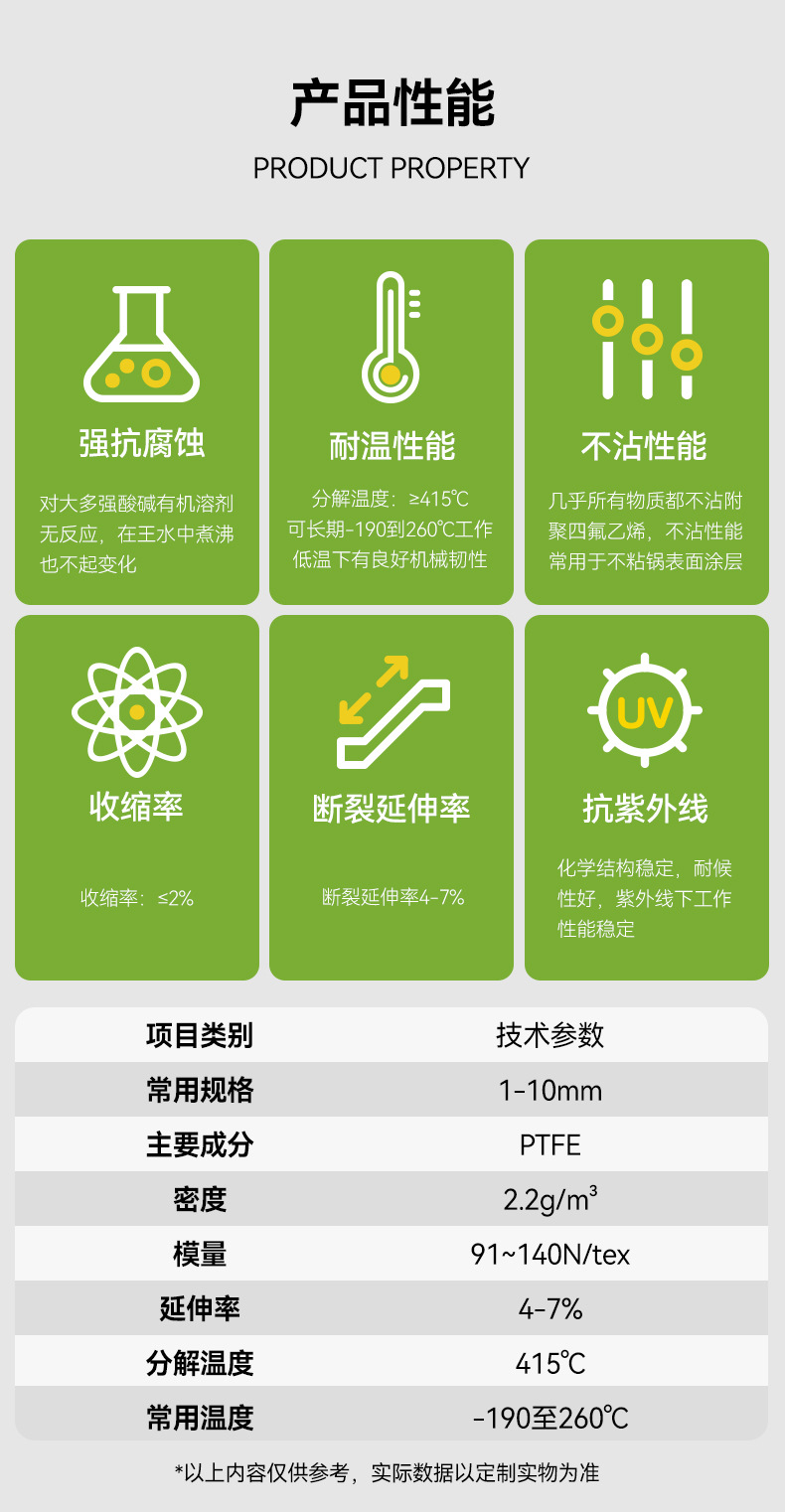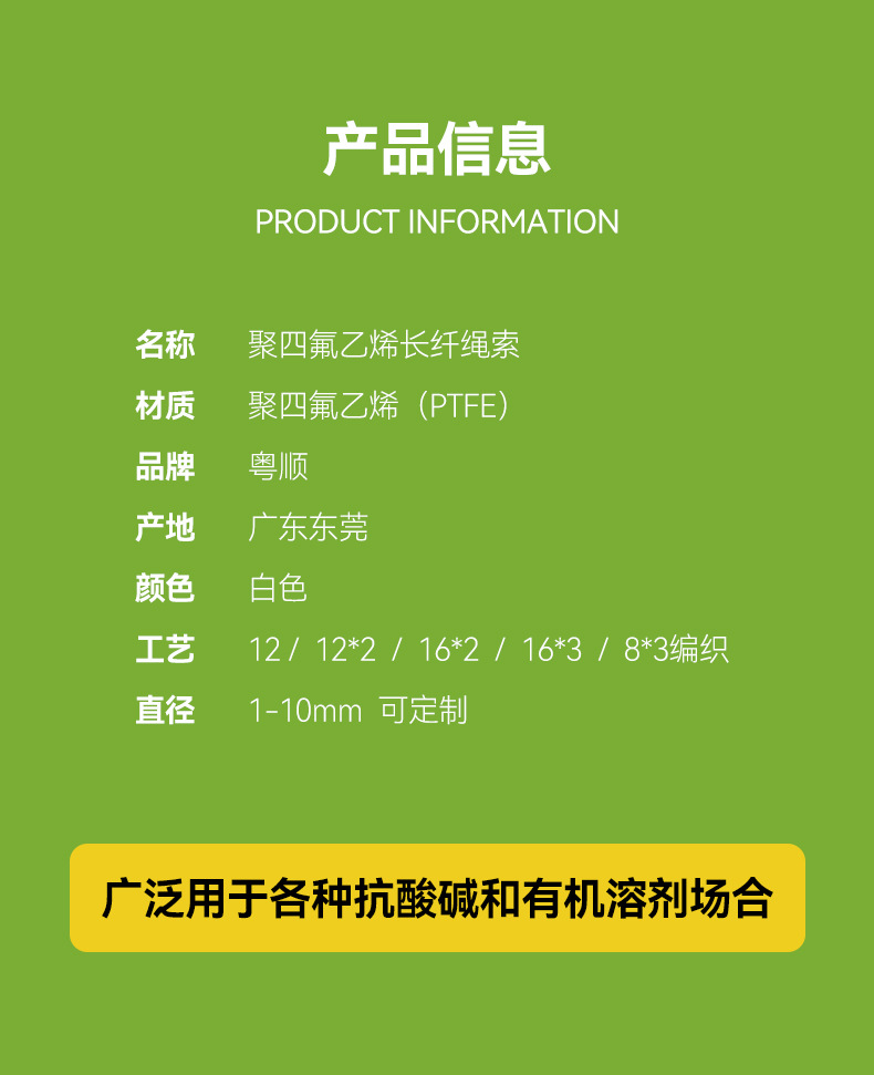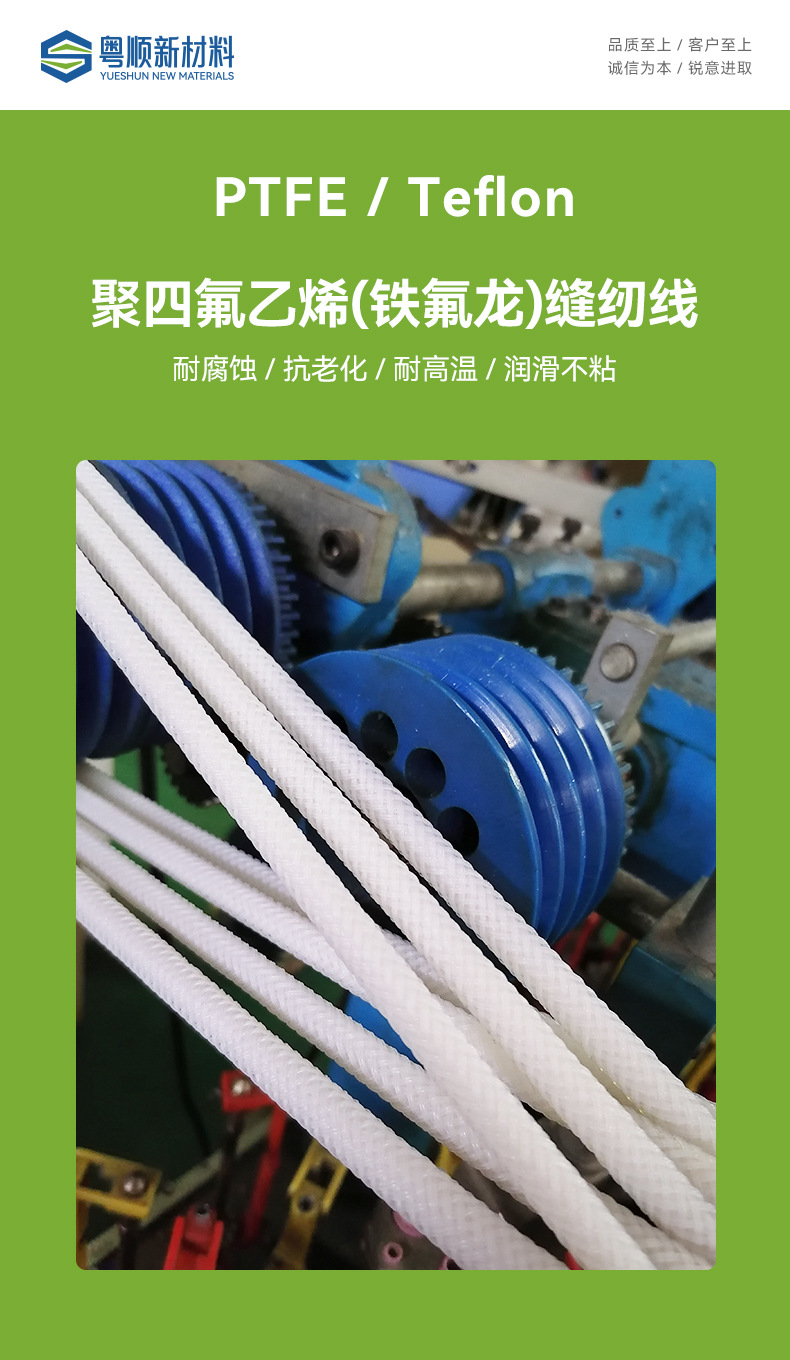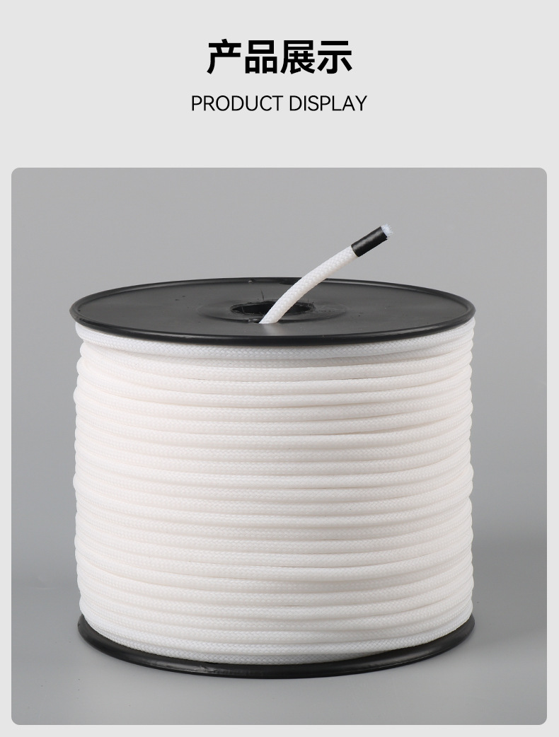 Tali Polytetrafluoroethylene PTFE Teflon bulat untuk kelautan, tali kepang, tahan korosi, tahan suhu tinggi, tahan asam dan alkali, tali tahan suhu tinggi