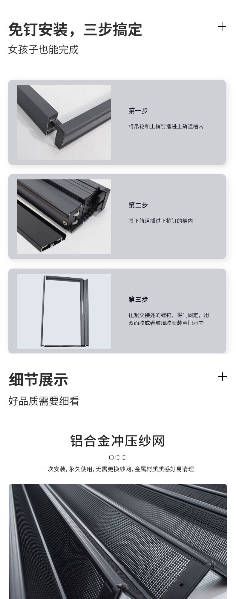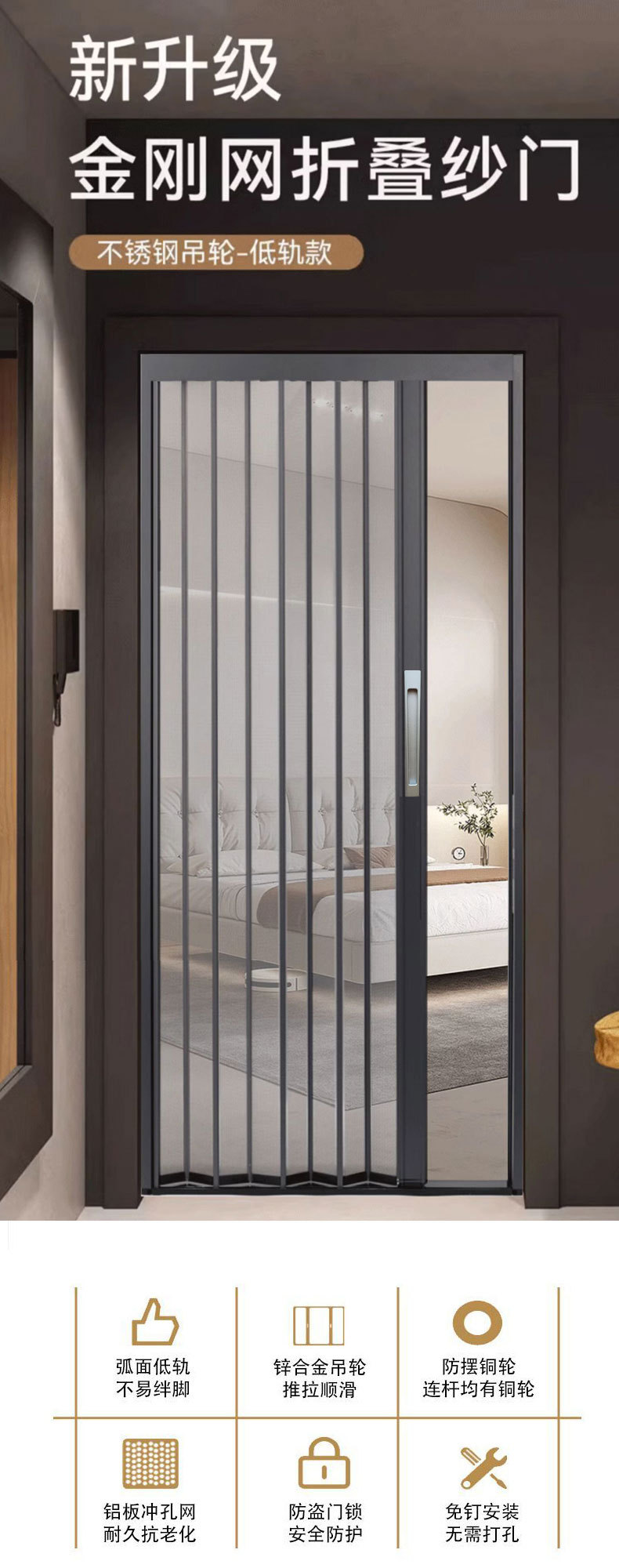 金刚网折叠纱门平网防盗带锁防猫狗老鼠铝合金极窄款隐形推拉沙门