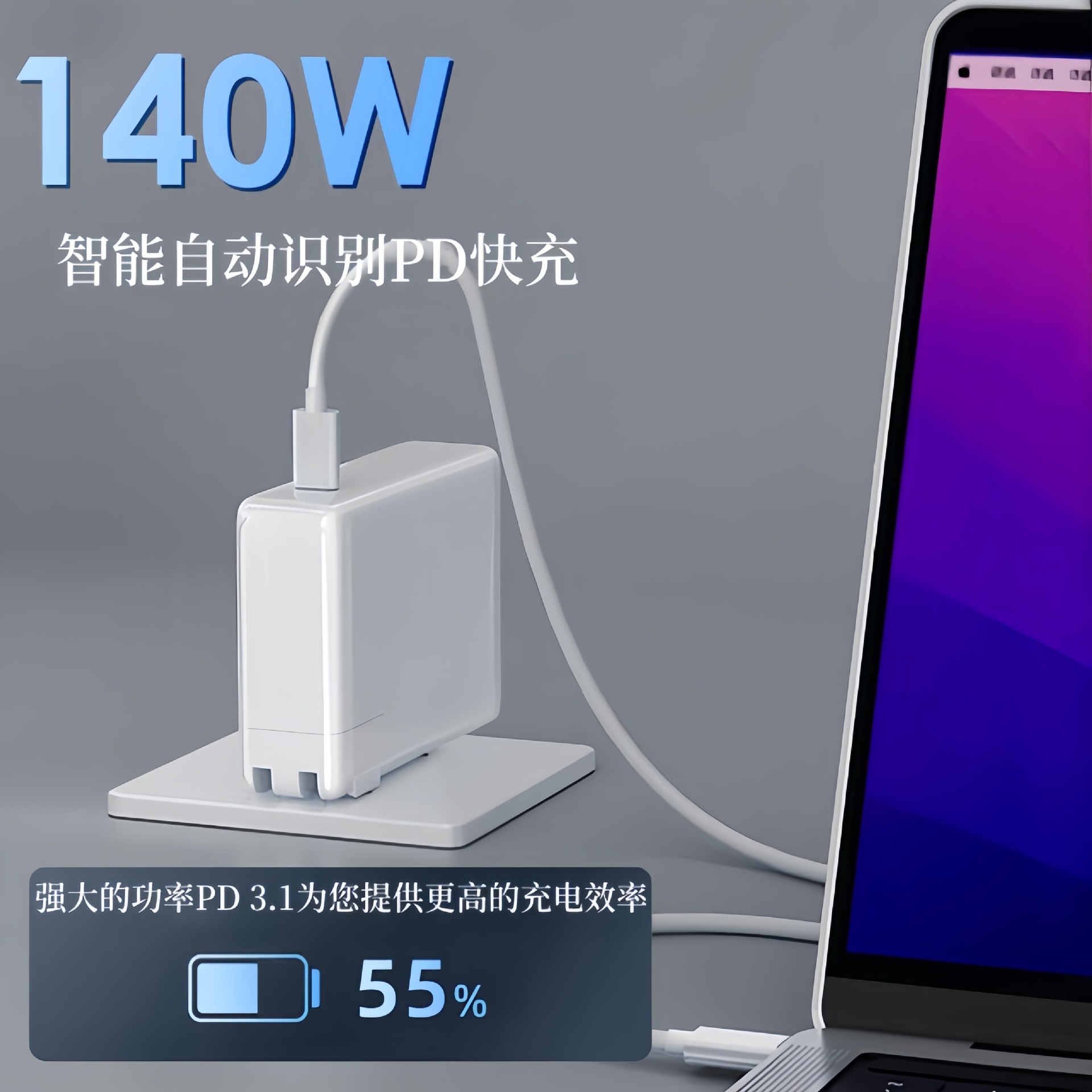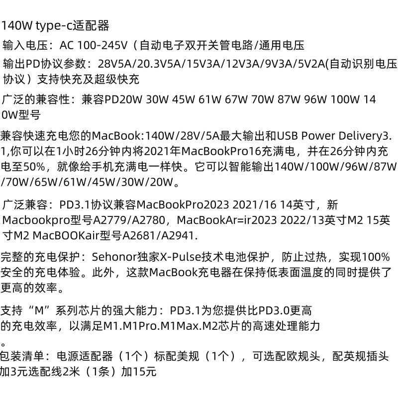 140W cocok untuk adaptor Apple macbook Magsafe 3 notebook pengisi daya gallium nitrida catu daya 28v5a