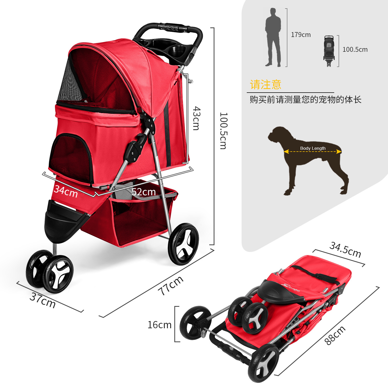 Kereta dorong hewan peliharaan, kereta dorong anjing kucing Teddy luar perjalanan dapat dilipat luar ruangan kecil ringan