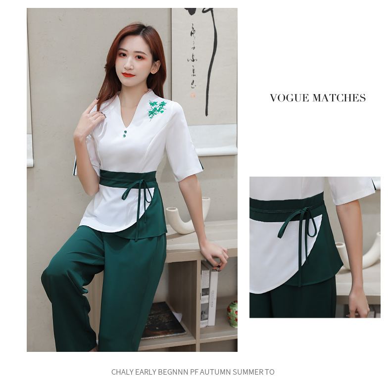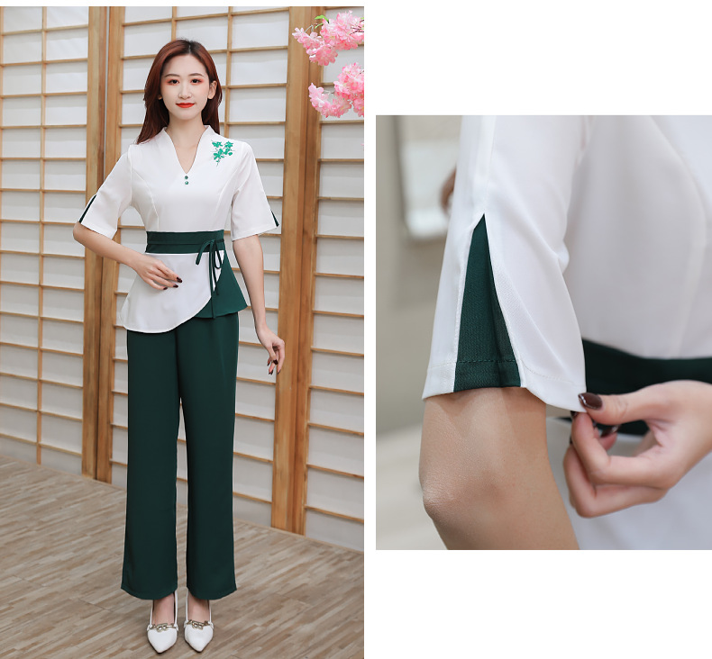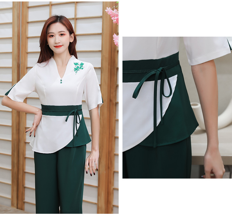 Pakaian Kerja Salon Kecantikan Model Baru Musim Panas 2024 Setelan Lengan Pendek SPA Teknisi Mandi Kaki Ahli Kecantikan Wanita