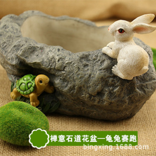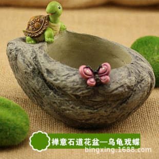 秉兴厂家直销仿石头石器创意多肉植物微景观乌龟禅意树脂花盆容器