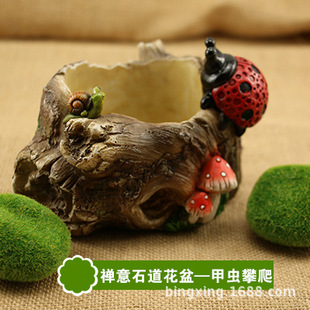 秉兴厂家直销仿石头石道创意多肉植物微景观甲虫禅意树脂花盆容器
