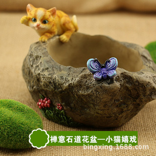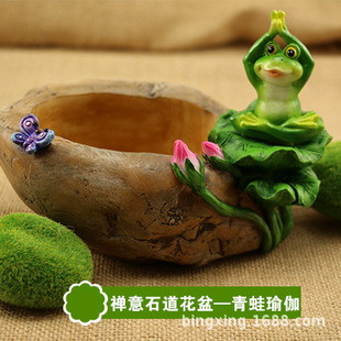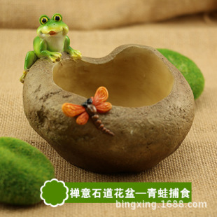 秉兴厂家直销仿石头石器创意多肉植物微景观青蛙禅意树脂花盆容器