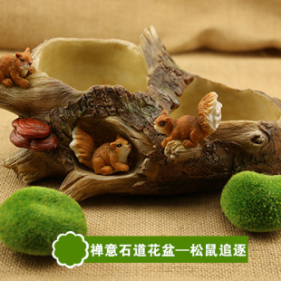 秉兴厂家直销防木头木桩创意多肉植物微景观松鼠禅意树脂花盆花器