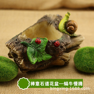 秉兴厂家直销防木头树桩创意多肉植物微景观蜗牛禅意树脂花盆容器