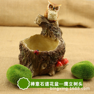 秉兴厂家直销木头树桩创意多肉植物微景观鹰头鹰禅意树脂花盆容器