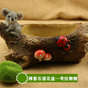 秉兴厂家直销防木头木桩创意多肉植物微景观考拉禅意树脂花盆花器