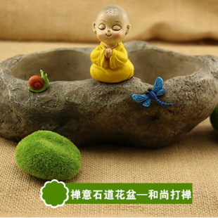 秉兴厂家直销防石头材质创意多肉植物微景观和尚禅意树脂花盆花器