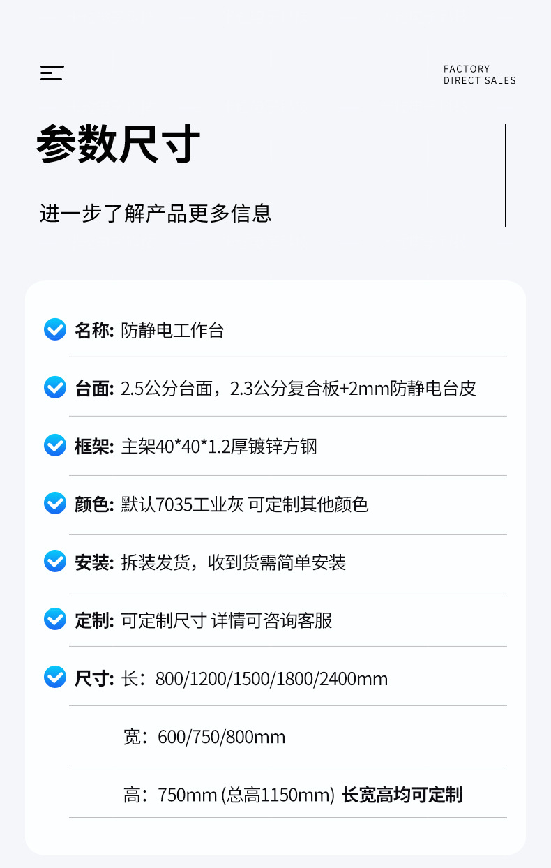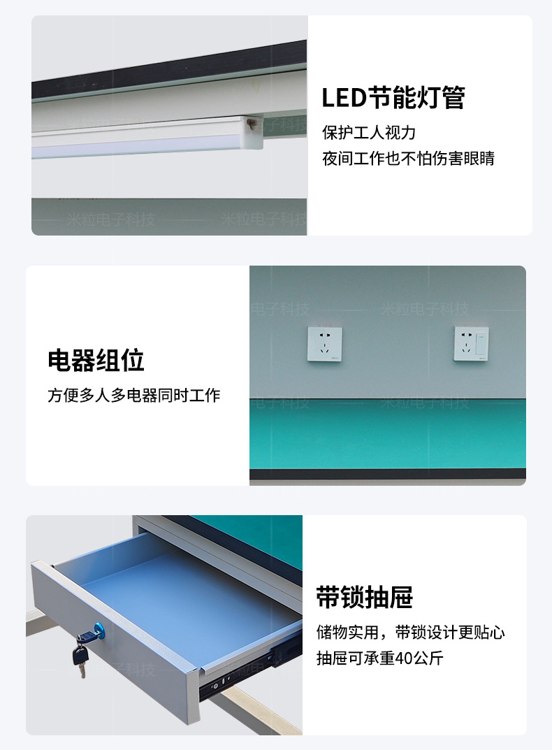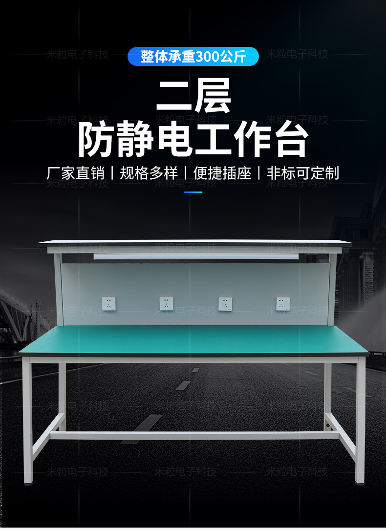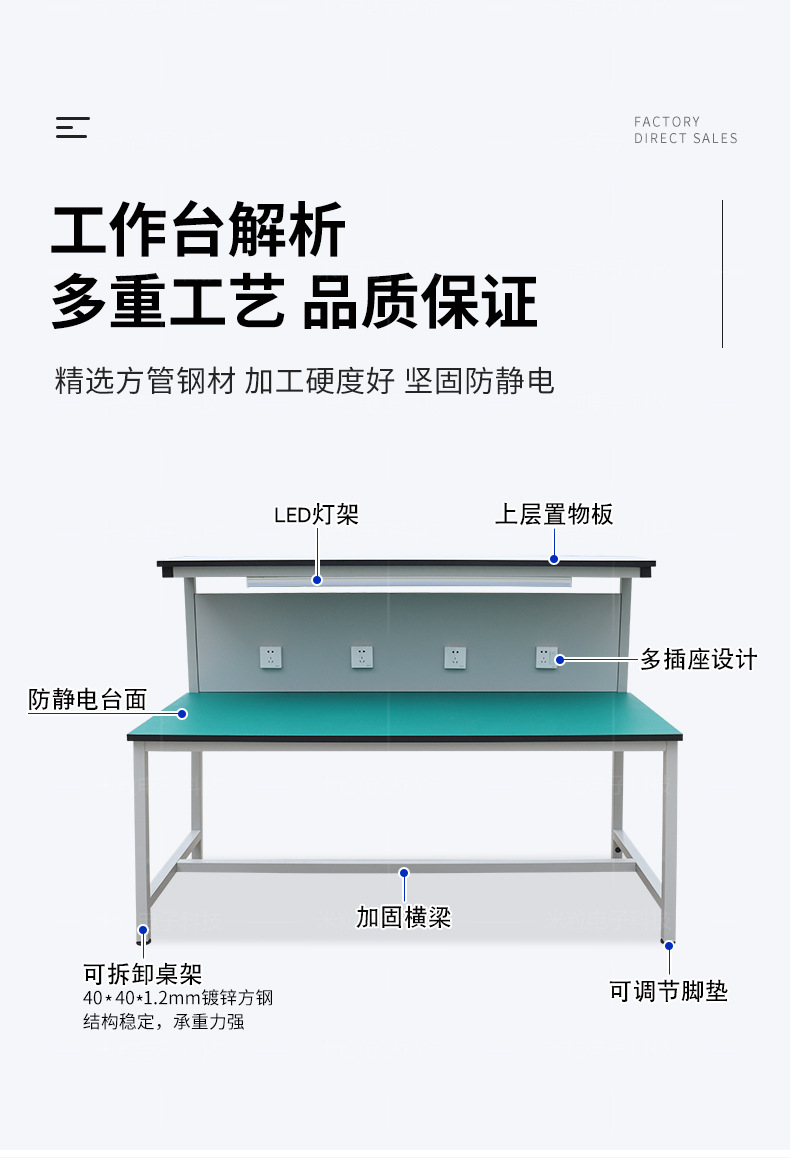 Meja kerja anti-statis dua lapis yang ringan, meja operasi bengkel pabrik jalur perakitan multifungsi, meja kerja tukang pemasangan profesional.