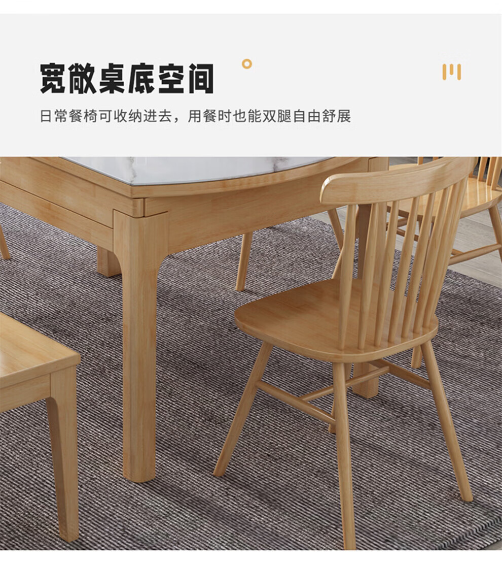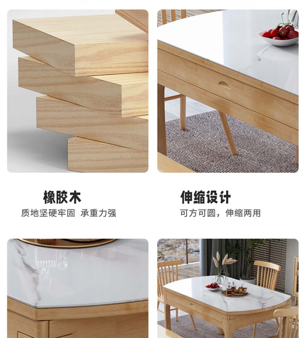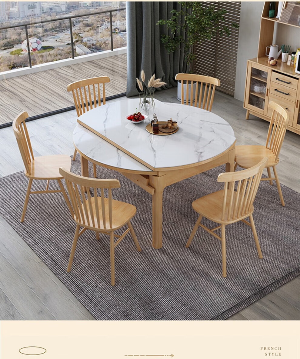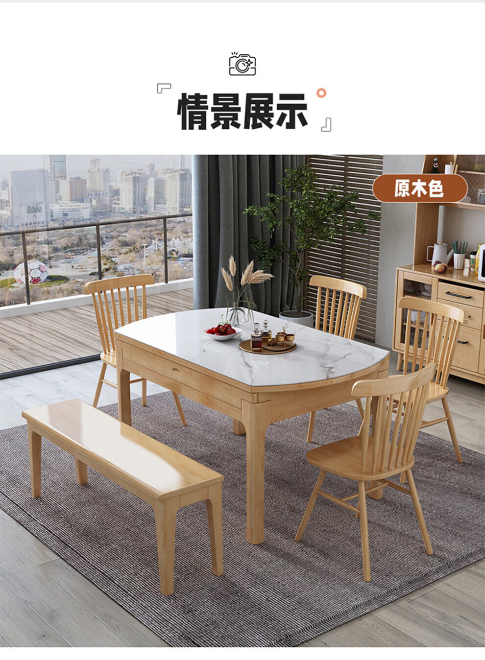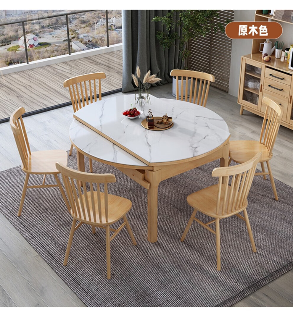 Meja makan kayu Solid dan kursi Nordik, piring batu rumah tangga hotel persegi dan bulat penggunaan ganda sub-restoran furnitur apartemen kecil meja makan